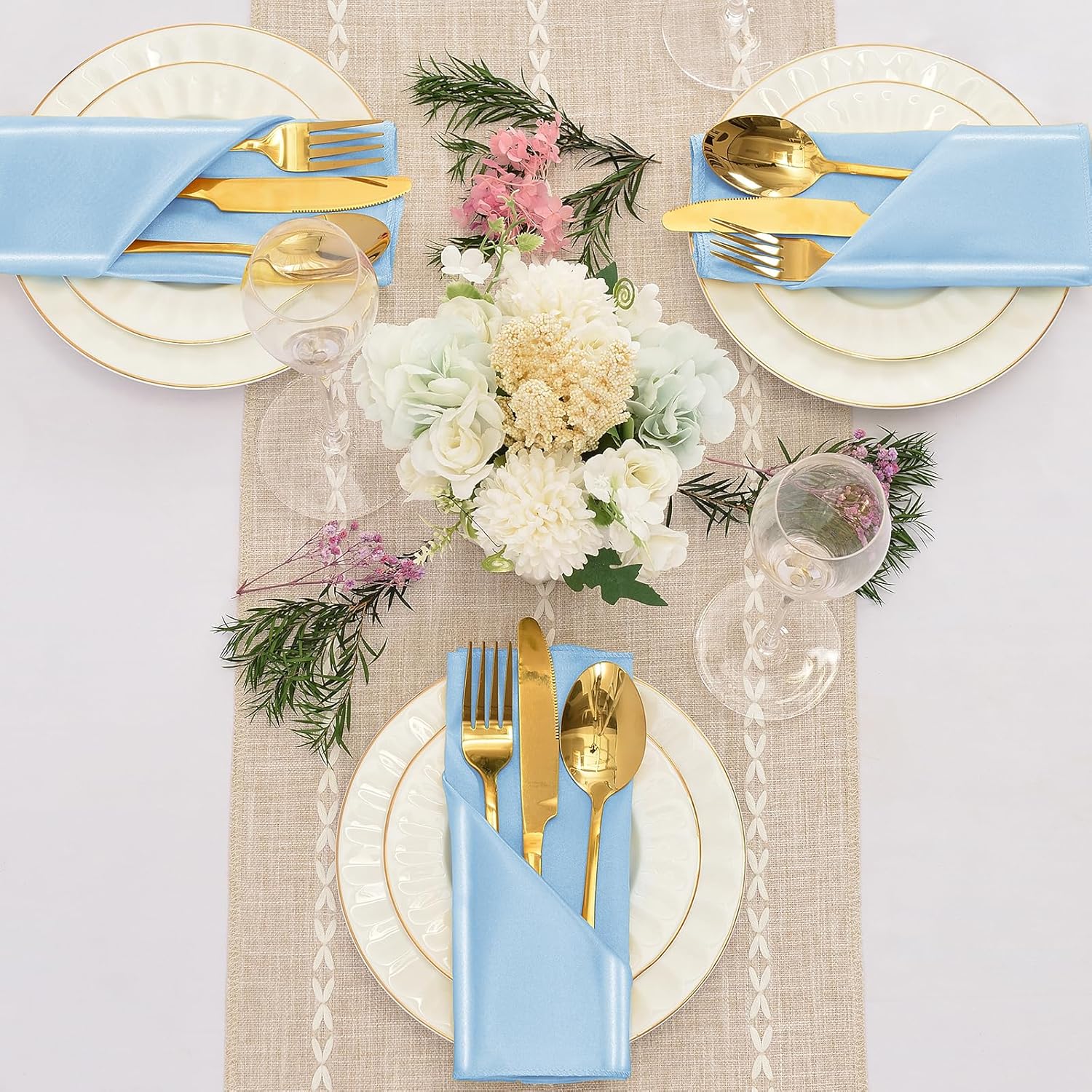 12 Pieces Light Blue Satin Napkins, 17" x 17" Square Table Napkins, Silky Soft Smooth Washable Napkins for Restaurant, Weddings, Dinner, Party Decoration