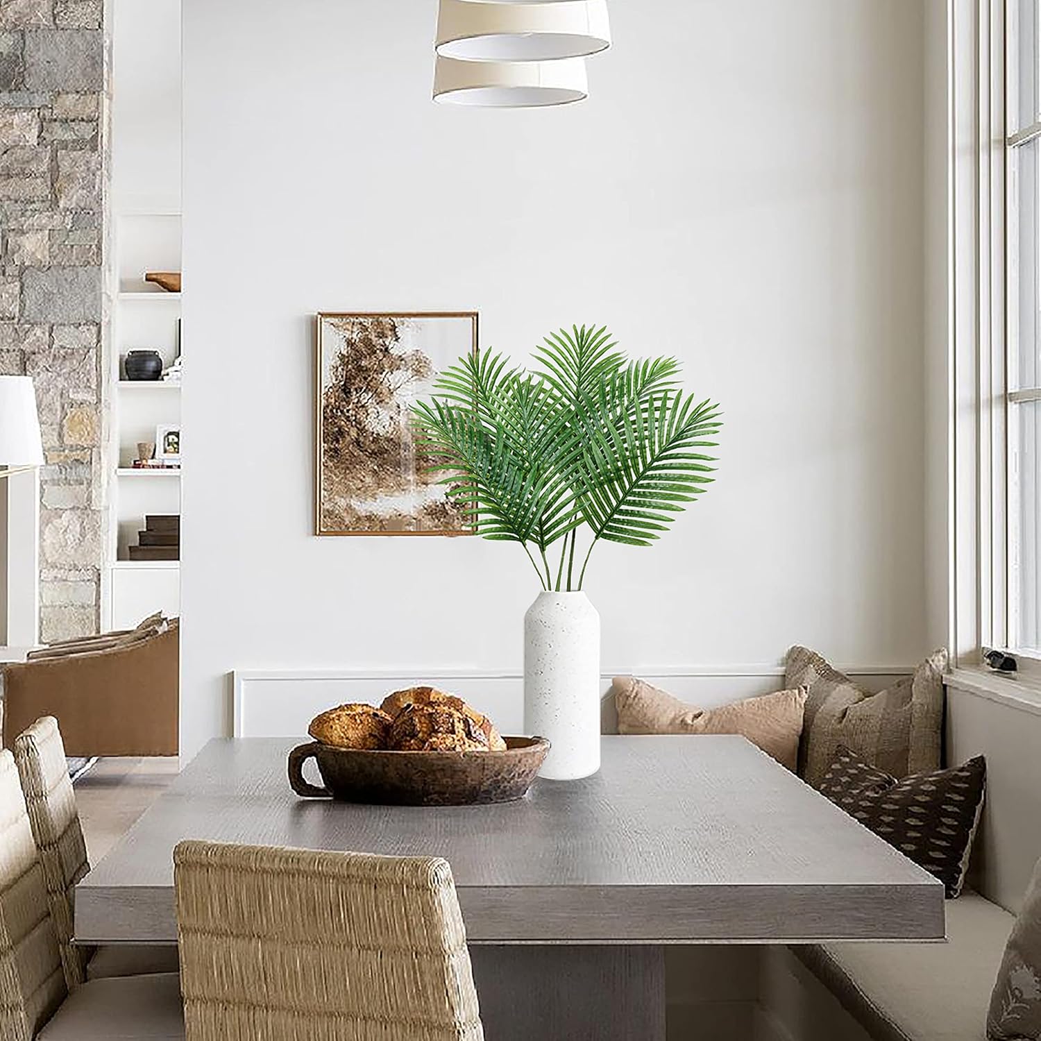 - Premium Material- Artificial palm leaf made of durable fabric, the surface of the leaves is glossy and the veins are clearly printed, Bendable palm stem to fit your vase or adjust the shape make it looks more real.