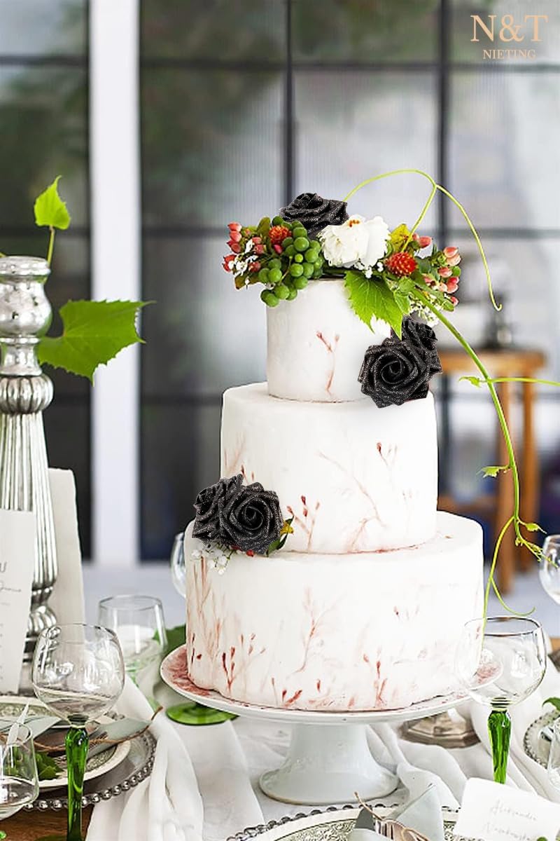 - Perfect for Wedding Decor: Each black glitter flowers rose heads are aprrox 3 inches, stem is approximately 8.2 inches long, which are perfect for making bouquets, centerpiece table decorations, kissing balls, boutonnieres or any other flower decorations that you want at your wedding, party, baby shower or home decor.
