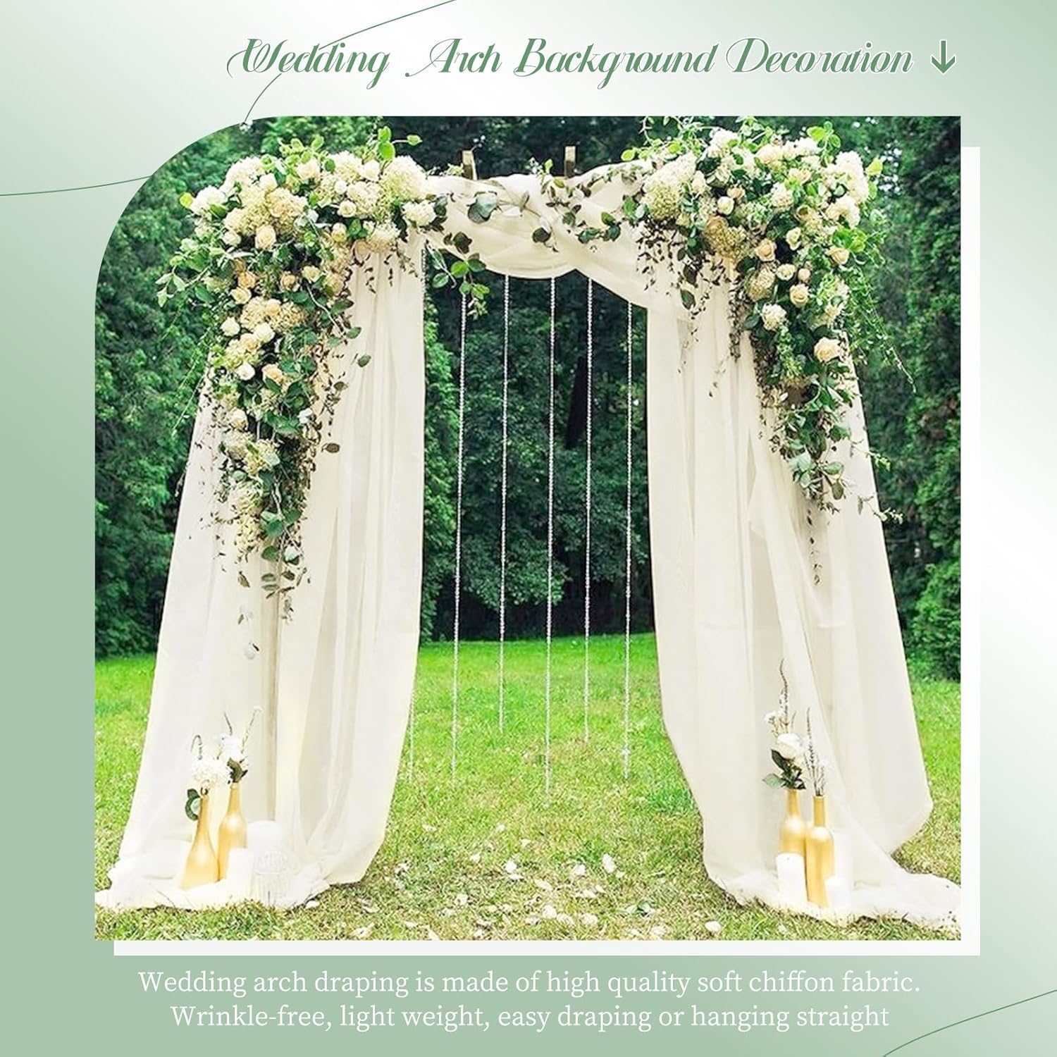 Wedding Arch Draping Fabric, 4 Panels 28" x20ft Ivory Wedding Arch Drapes, Sheer Chiffon Curtain Arbor Drapery Ceiling Drapes Sheer Backdrop Curtains for Wedding Ceremony Party Ceiling Decor