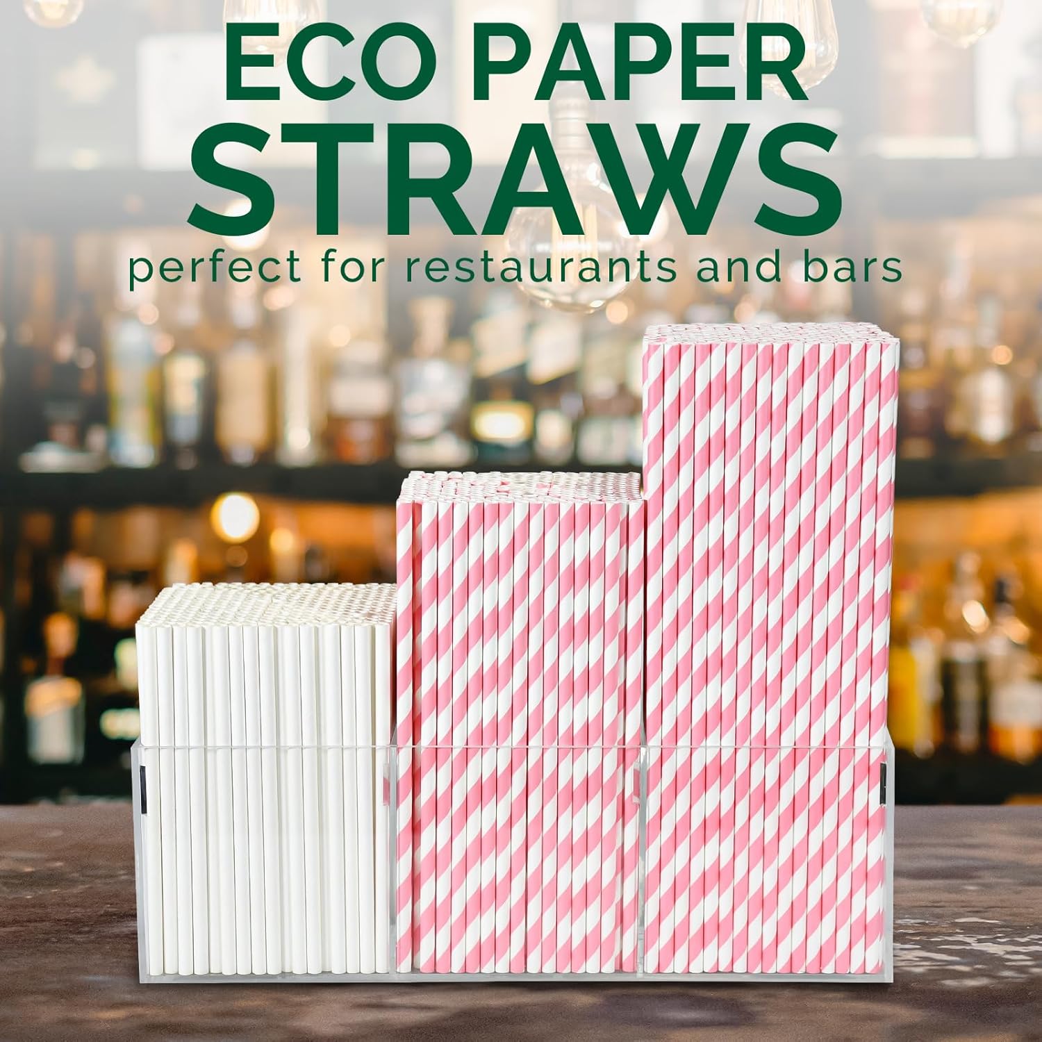 10.25" Long Pink/White Striped Disposable Paper Drinking Straws Bulk - Unwrapped [600 Counts]