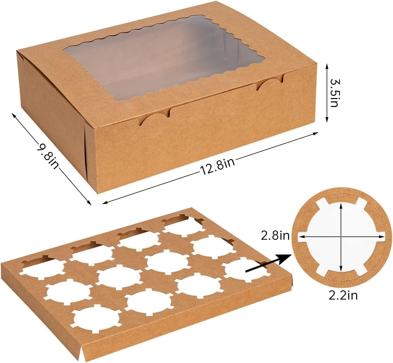 - Perfect Size: Our convenient boxes are generously sized that measures 12.8 x 10 x 3.5 inches, and insert measures 2.56" in diameter. Inserts are deep and wide enough to hold small or large cupcakes.