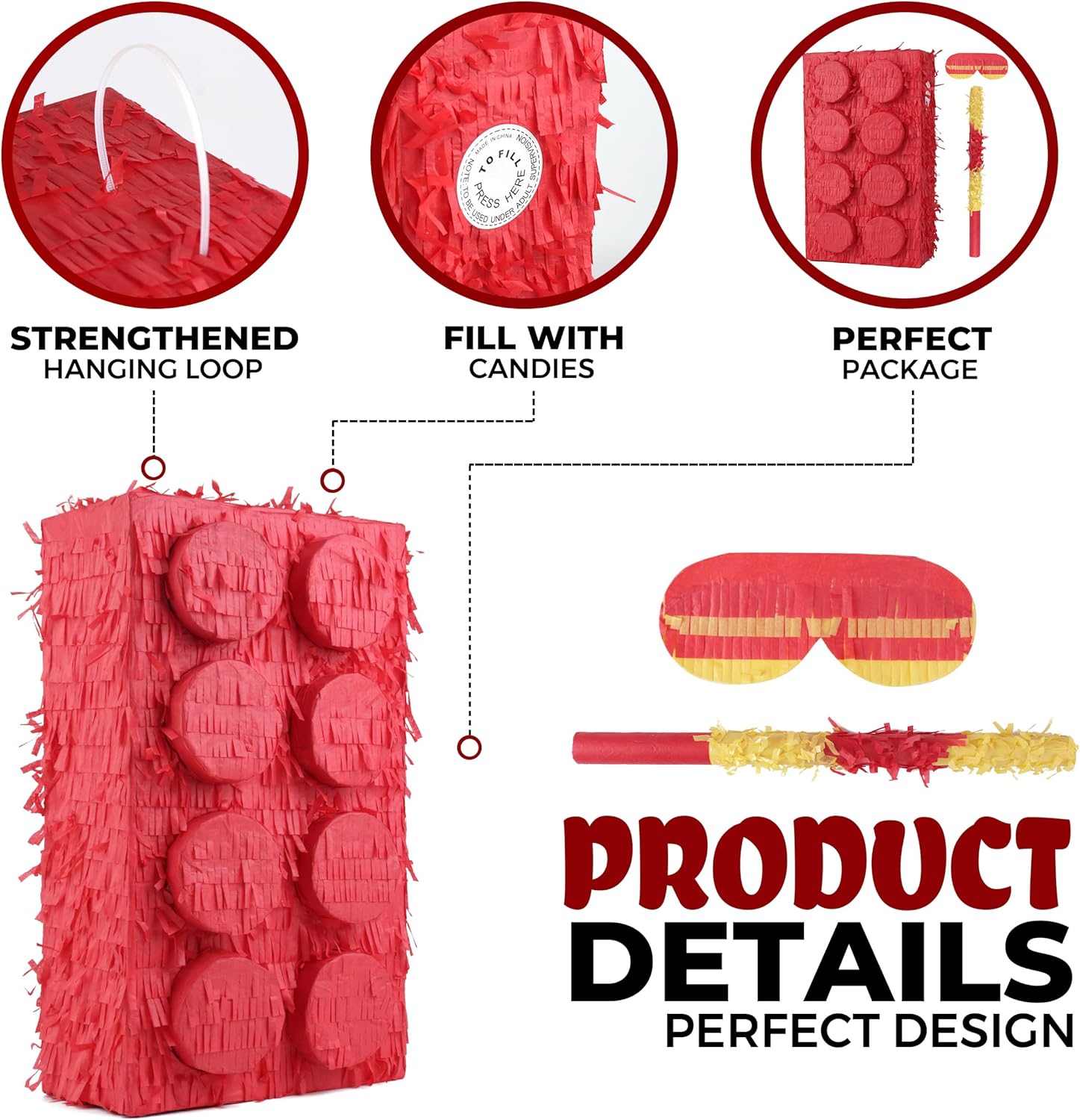 - ❤️【 PERFECT FOR A FUN PARTY】- Use the block pinata as decoration for parties or have guests take turns to try and break the pinata to release all the candies inside.