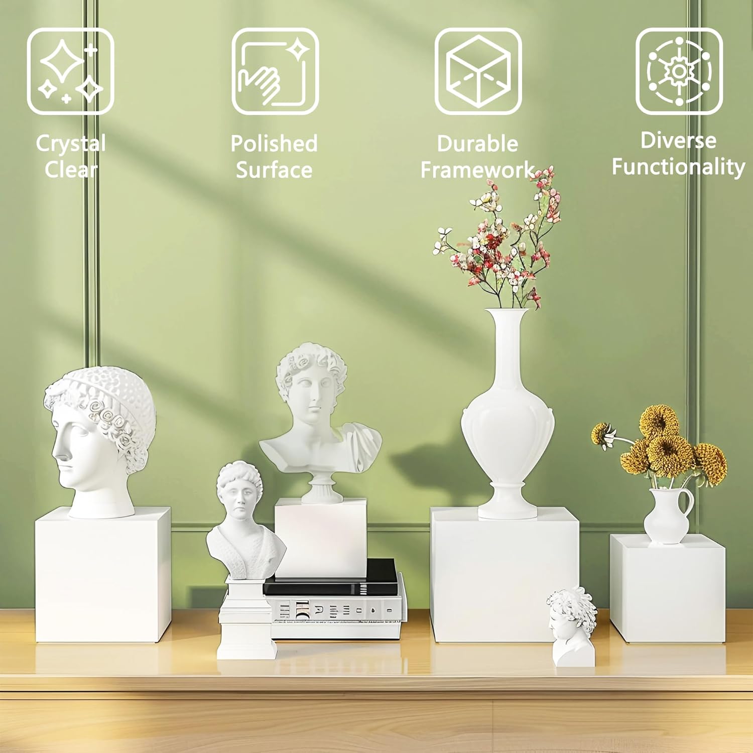 - Versatile Applications: These boxes are suitable for a wide range of settings, including parties, weddings, kitchens, dresser vanities, retail stores, exhibitions, museums, and personal collections. Their varying sizes can be arranged in combinations to create a unique aesthetic appeal