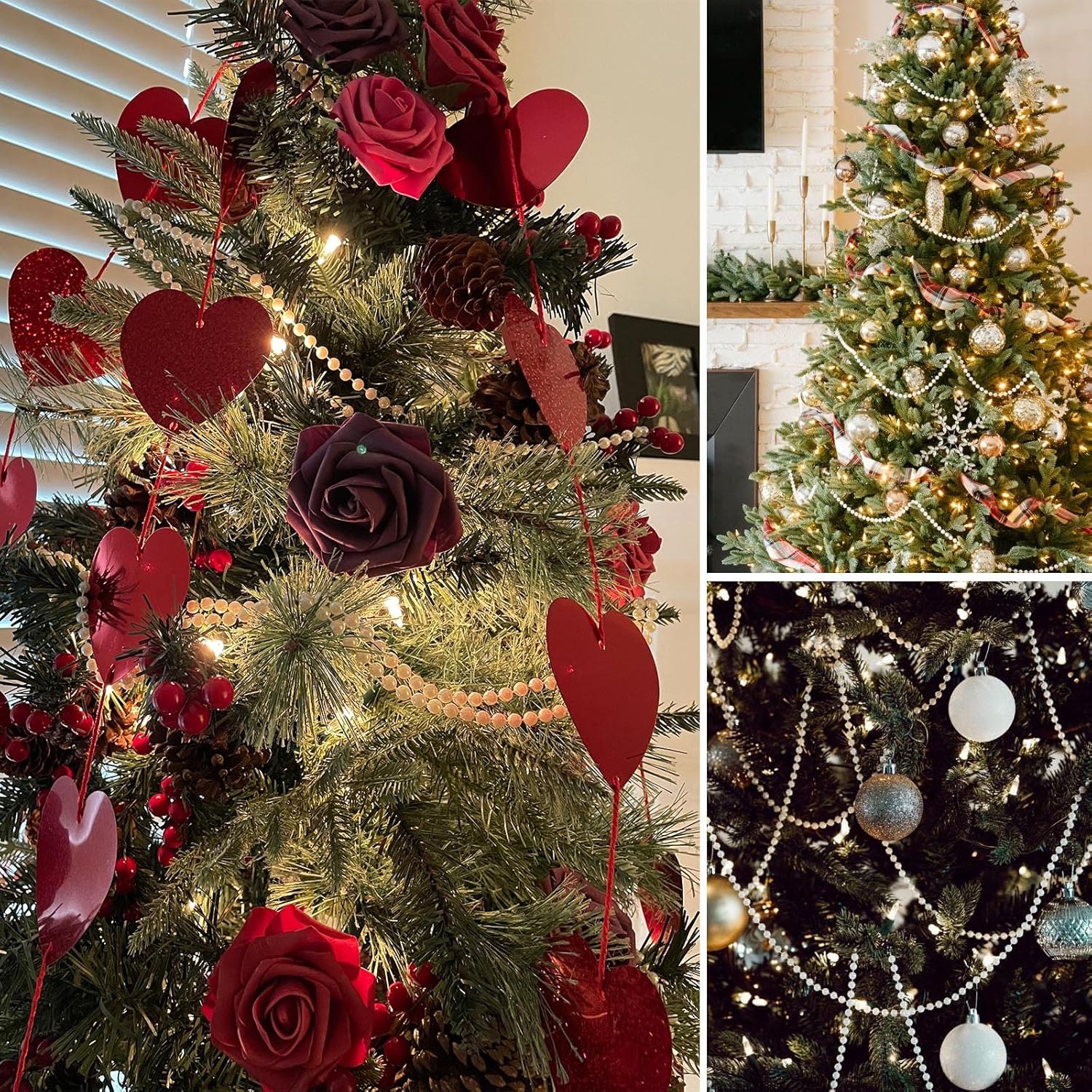 [47Feet] Pearl Beads Garland, 8MM 15.7 Yards Faux Pearl Beads String Roll Bulk for DIY Craft Wedding Party Christmas Tree Decoration