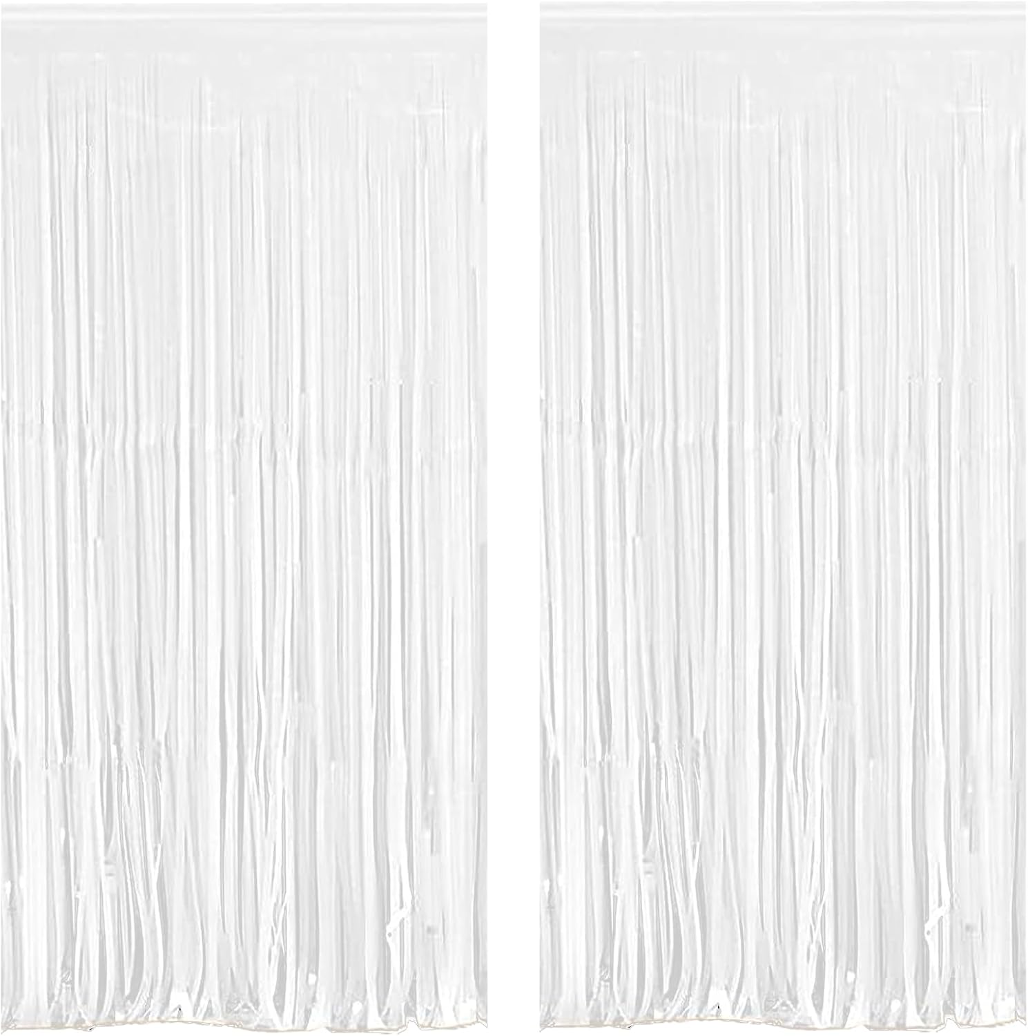 White Foil Fringe Curtain 3.3×8.3FT 2 Packs, Metallic Tinsel Curtains Party Streamers for Birthday Graduation Baby Shower Decoration (2pcs,3.3FT×8.3FT, White)