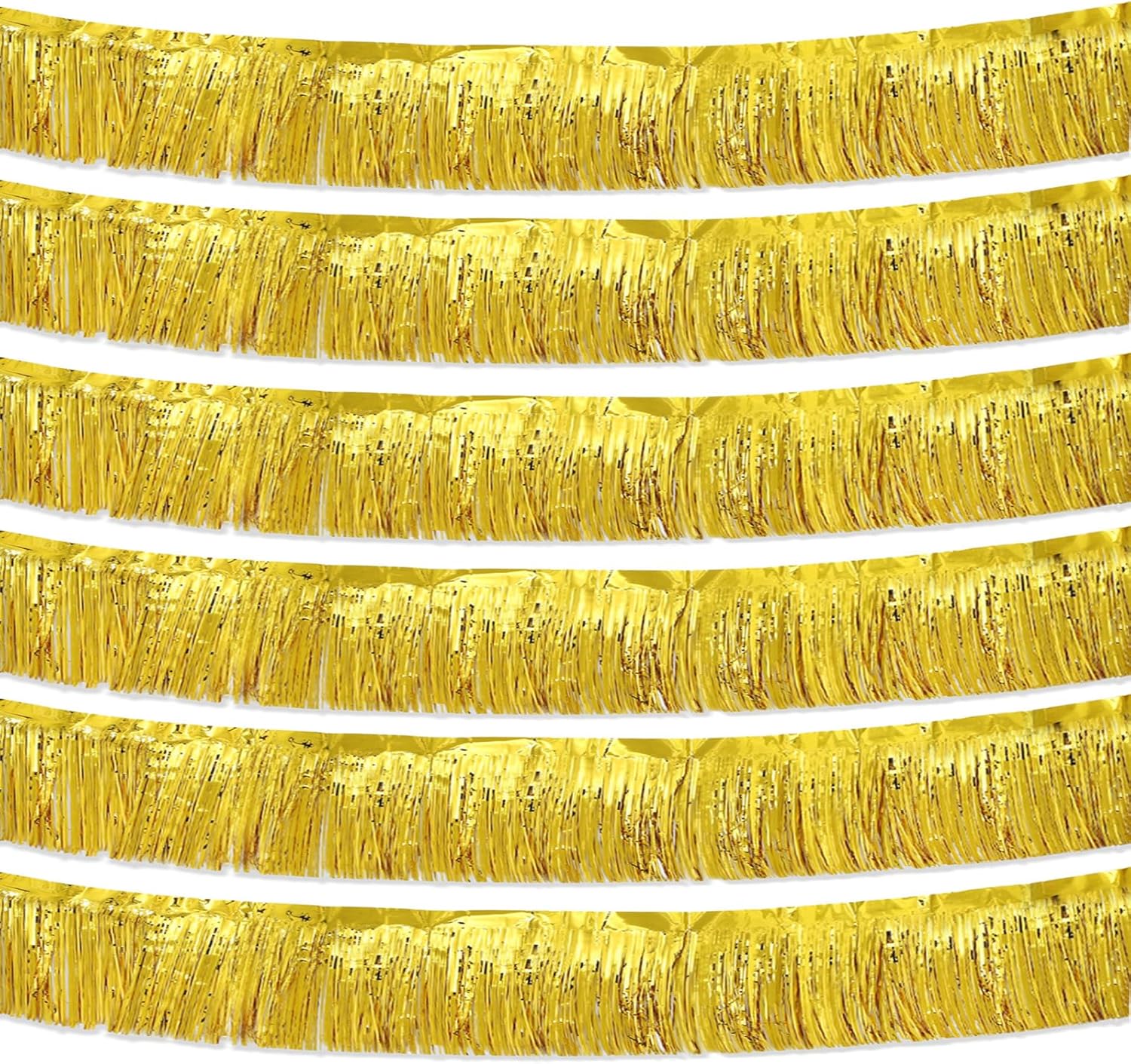 Gold Foil Fringe Garland 10FT 6packs, Metallic Foil Tinsel Fringe Banners for Parade Float Decorations Wedding, Birthday Party Graduation (six Gold)