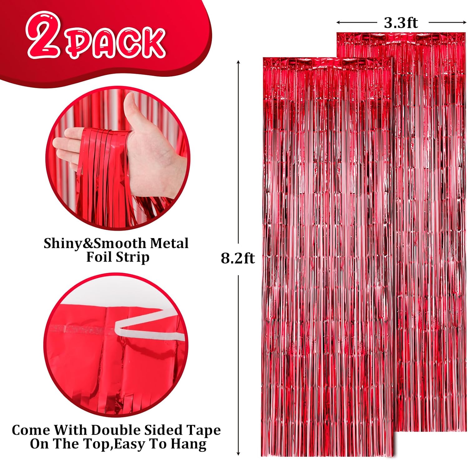 2 Pack Red Foil Fringe Backdrop Curtains, Tinsel Streamers Birthday Party Decorations, Fringe Backdrop for Graduation, Baby Shower, Gender Reveal, Disco Party