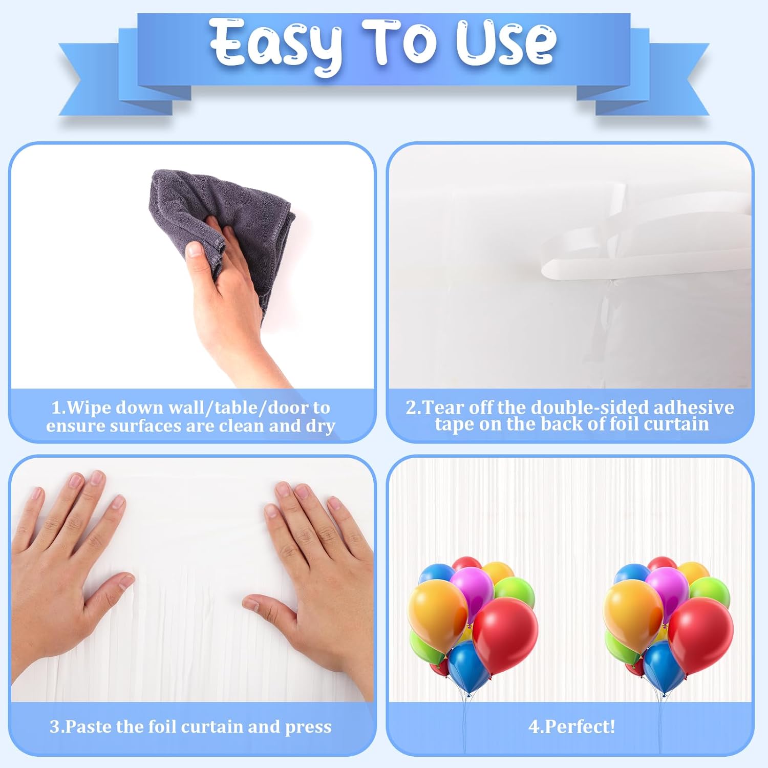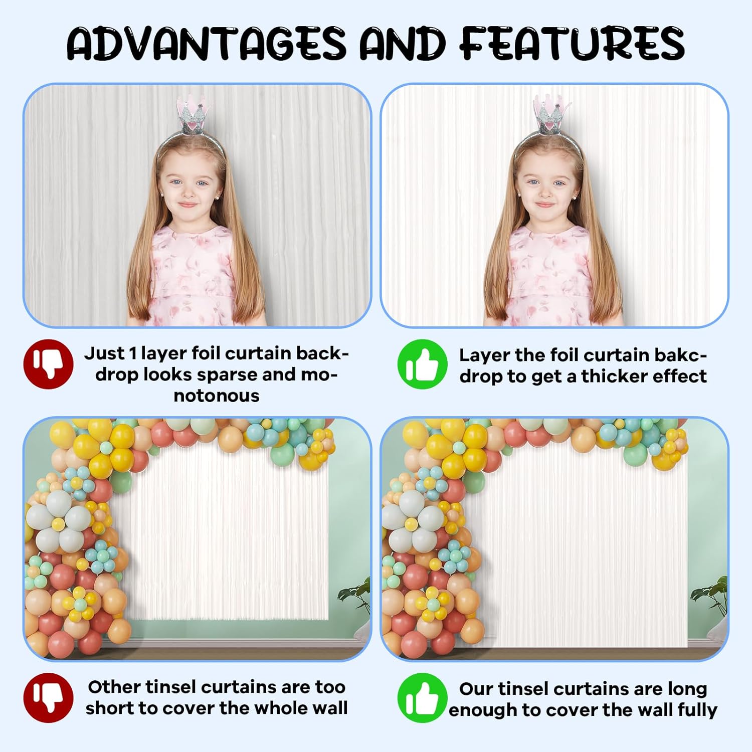 - Premium Material: This white foil curtain backdrop is made of stable tinsel, non-fading, stay shiny and reusable. Unfold it and then enjoy your glittering party
