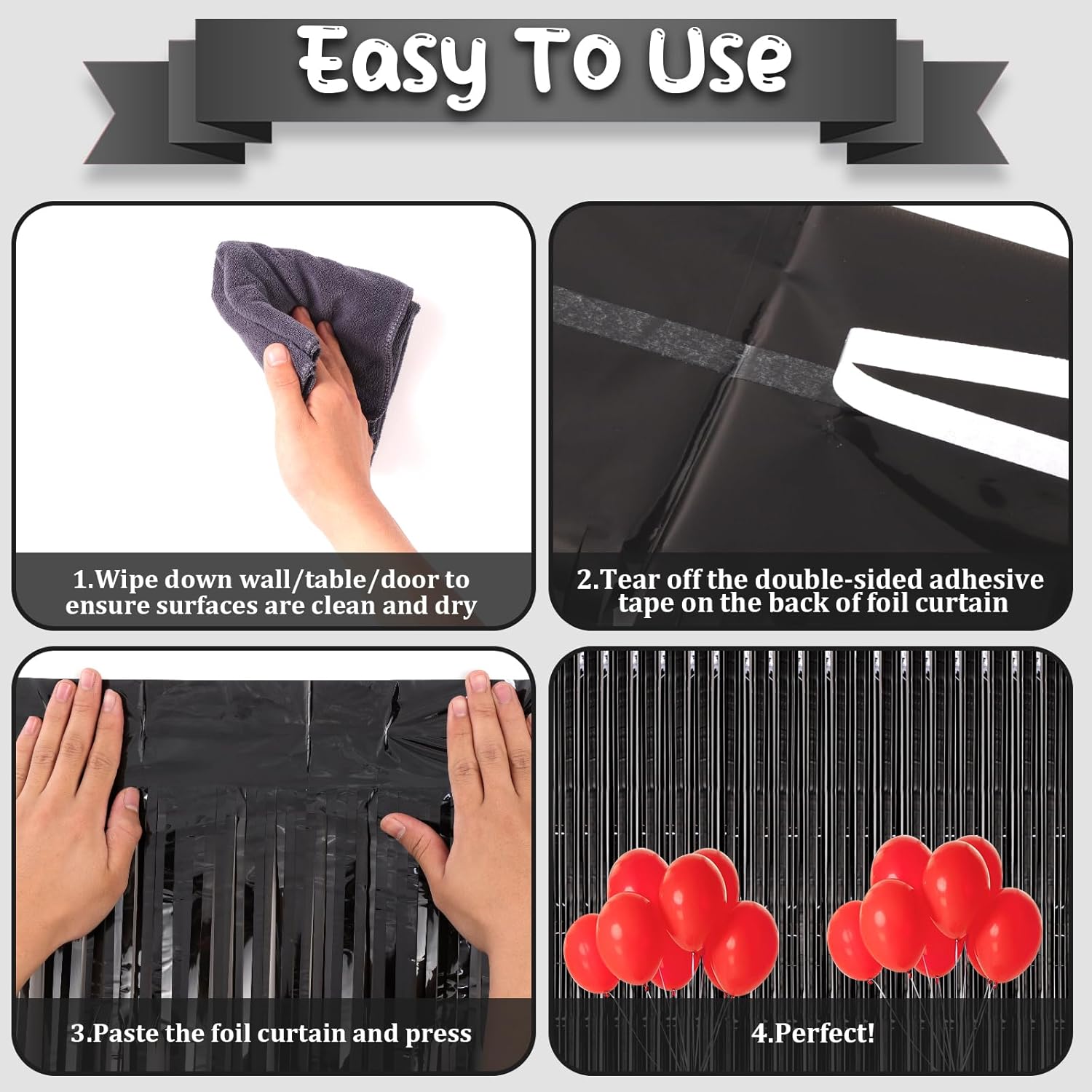 - Premium Material: This black foil curtain backdrop is made of stable tinsel, non-fading, stay shiny and reusable. Unfold it and then enjoy your glittering party