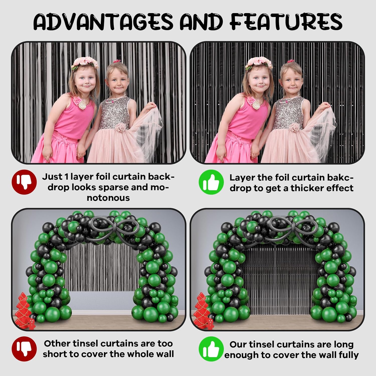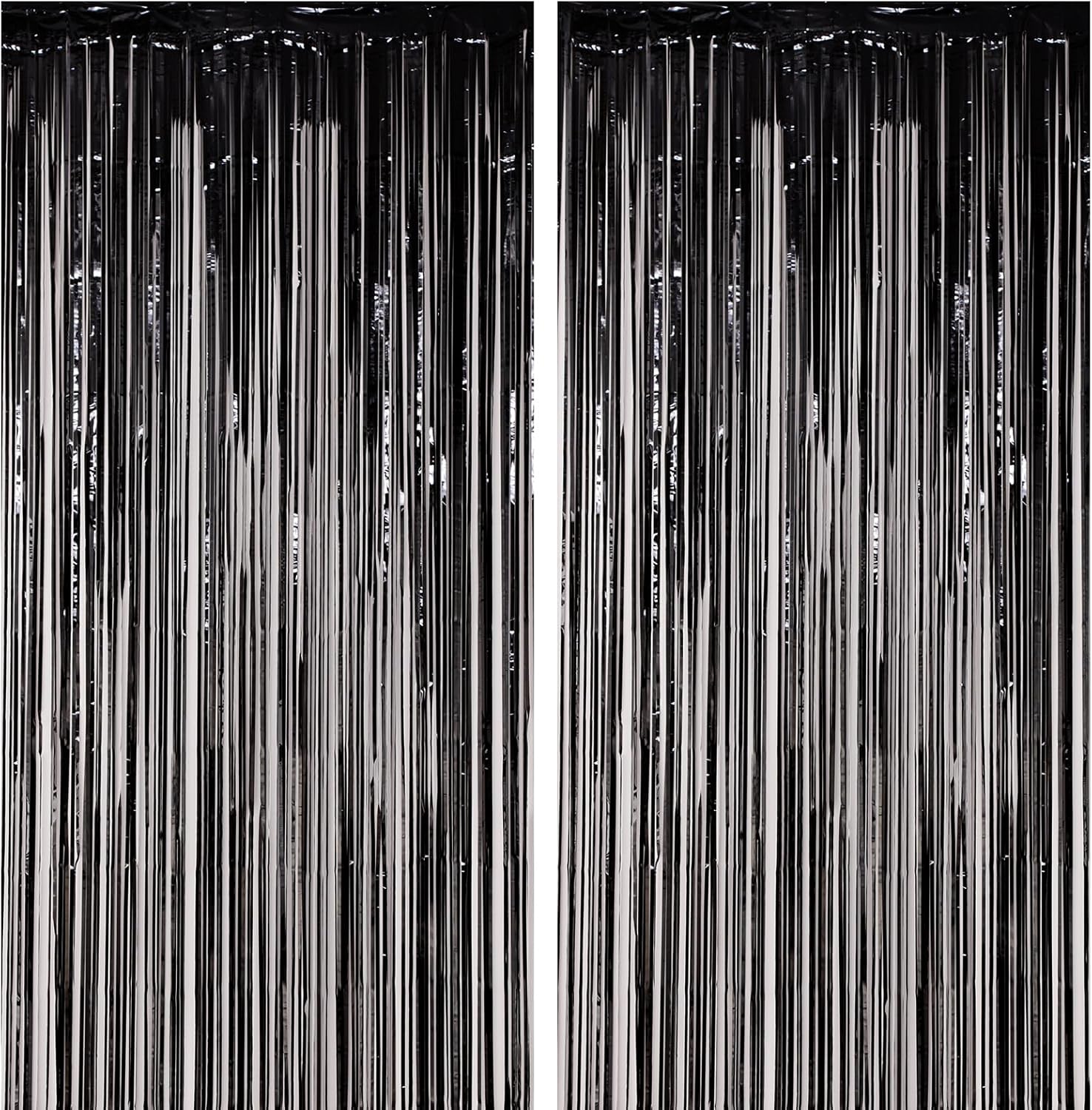 2 Pack Black Foil Fringe Backdrop Curtains, Tinsel Streamers Birthday Party Decorations, Fringe Backdrop for Graduation, Baby Shower, Gender Reveal, Disco Party