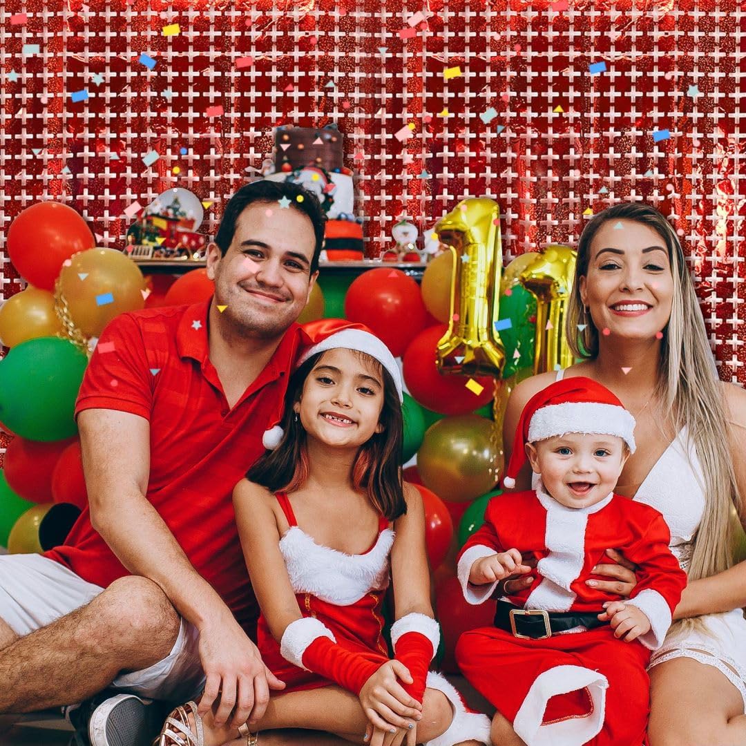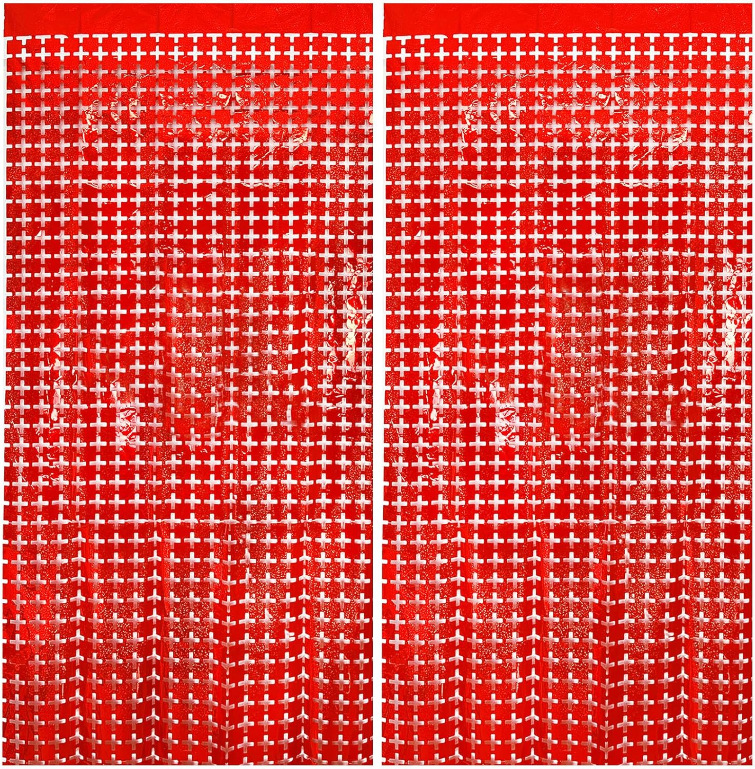 2 Pack Red Square Tinsel Party Backdrop Christmas Decorations Foil Fringe Backdrop Curtains Carnival Casino Theme Birthday New Year Holiday Celebration Bachelorette Party Decorations Supplies