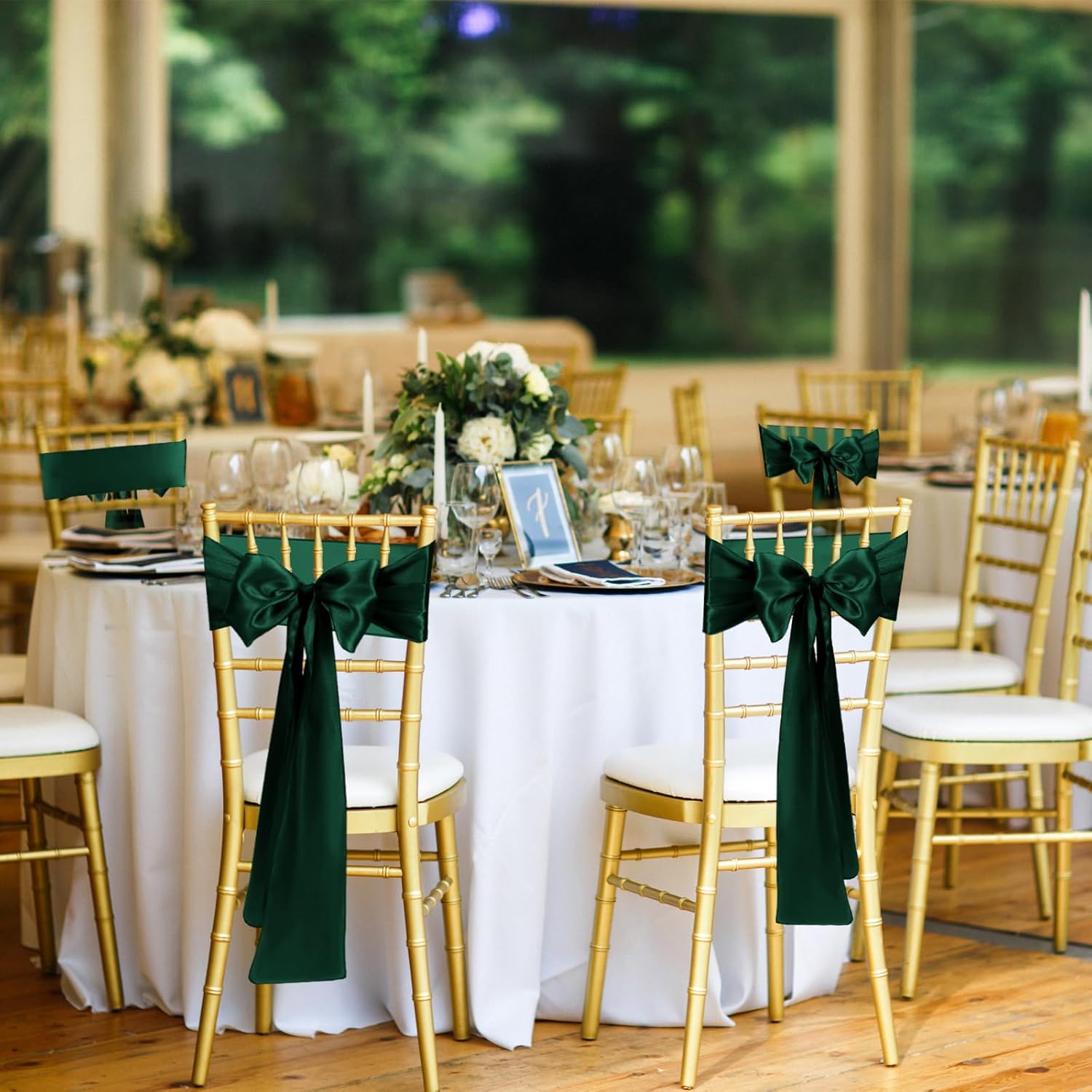 - Size & Package:You will get 10 pieces forest green satin chair sashes, and the size is about 108" x7" or 275cm(l) x 17cm(w). These chair ties adopt flating packing, please to tie the bow by yourself. Each package includes chair sashes only, no chair covers
