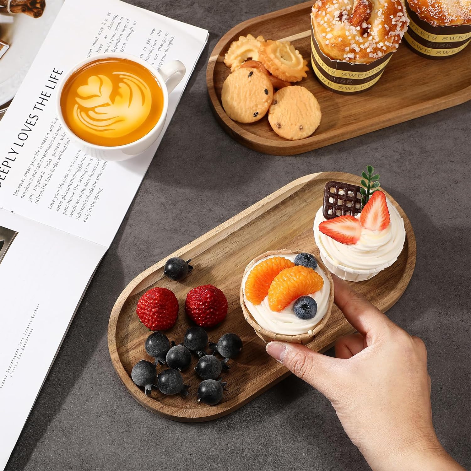 Wenqik 18 Pieces Acacia Wood Tray Set 10 x 5 Inch Acacia Oval Wood Tray Platters Plates Set for Fruit Cheese Dessert Appetizer Vegetable Charcuterie BBQ Party Weddings Supply