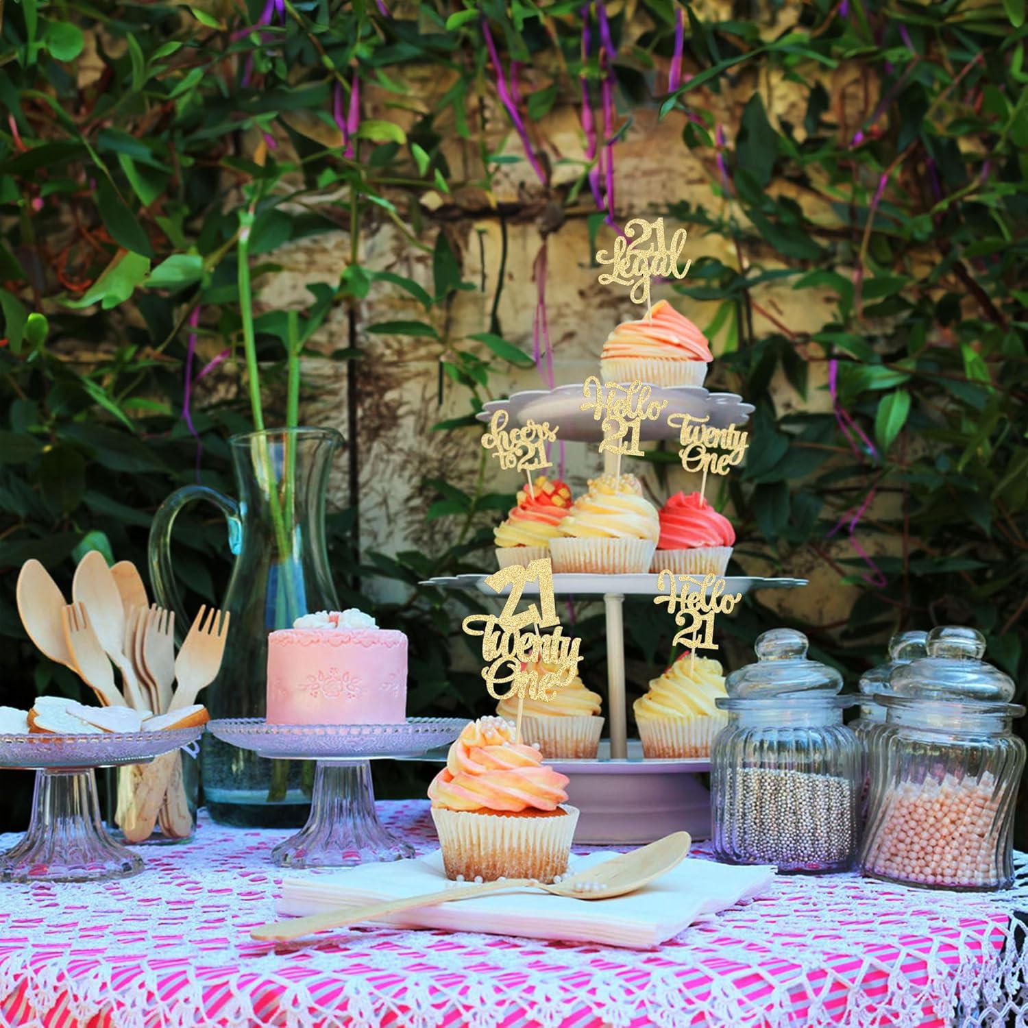 30Pcs 21st Birthday Cupcake Toppers: 21 Legal Cupcake Picks, Cheers to 21 Years Old Cake Decorations for 21st Birthday Anniversary Party Supplies - Gold Glitter