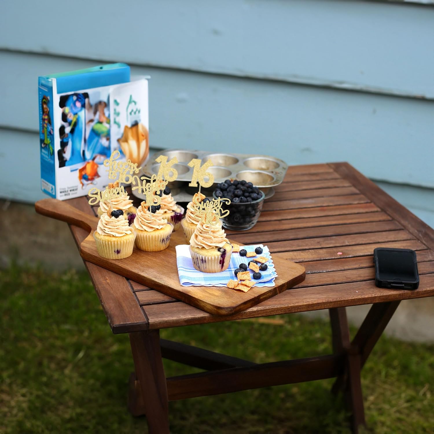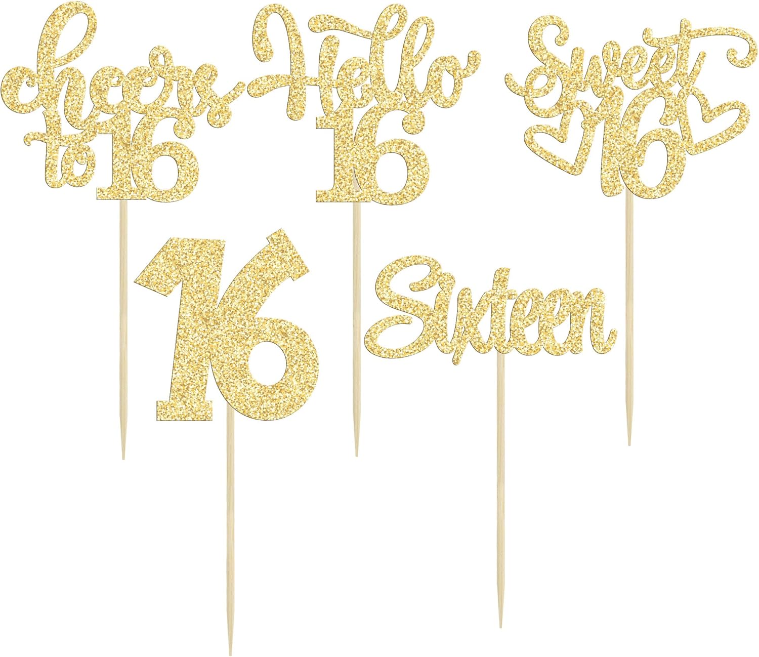 30pcs 16th Birthday Cupcake Toppers - Sixteen Happy 16th Cupcake Picks - Cheers to Sweet 16 Cake Decorations - Gold Glitter