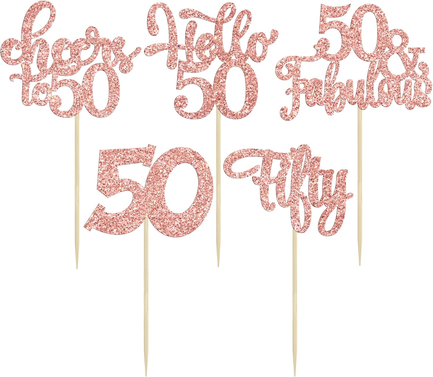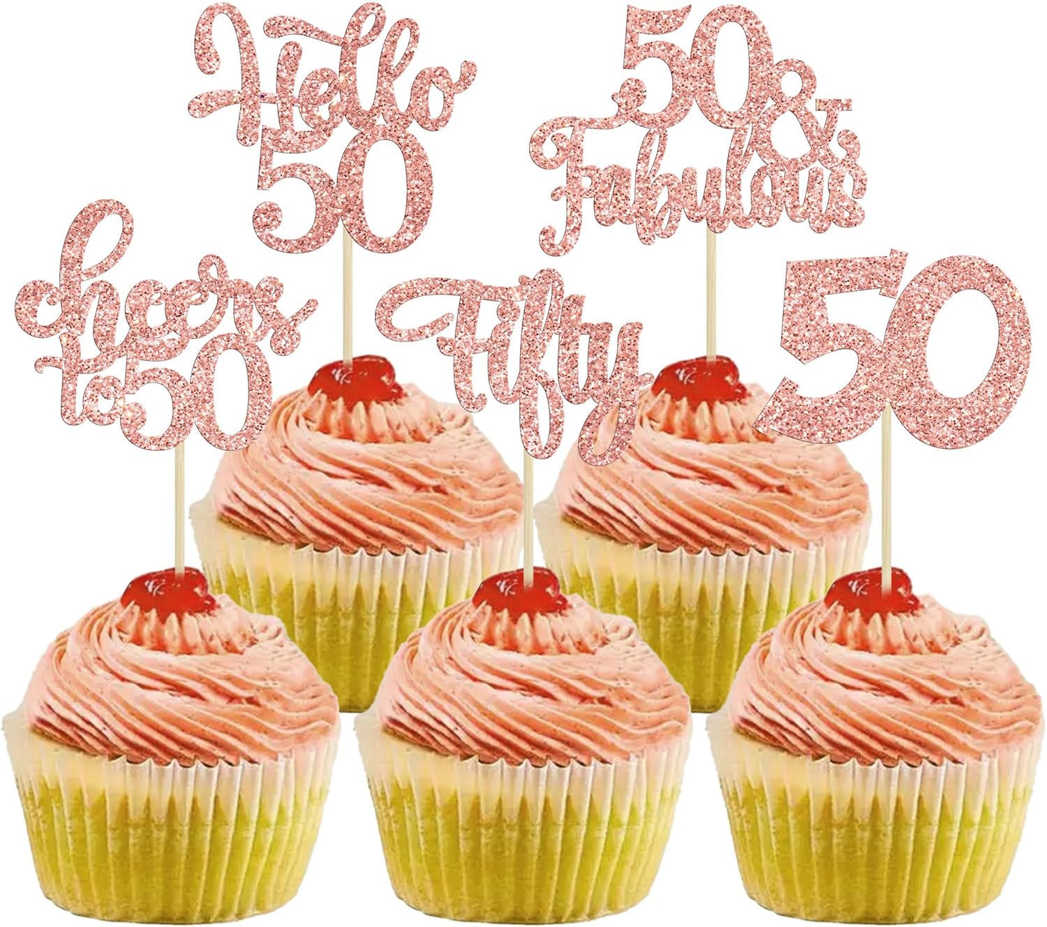 30Pcs Happy 50th Birthday Cupcake Toppers Rose Gold Glitter Fifty Cheers to 50 Years Old Birthday Cupcake Picks for 50th Birthday Anniversary Party Cake Decorations Supplies
