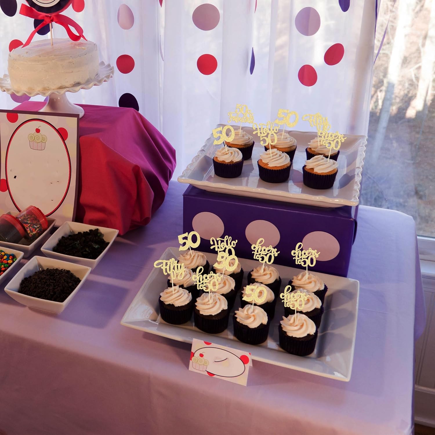 - -These Happy 50th Birthday Cupcake Toppers are so cute and good for happy 50th birthday theme party, cheers to 50 years theme party, 50 fabulous theme party, happy 50th birthday anniversary theme party cake decorations. They can make your cupcake more attractive and bring the fun to your party. You can also apply them for ice cream, fruits, cookies and other desserts.