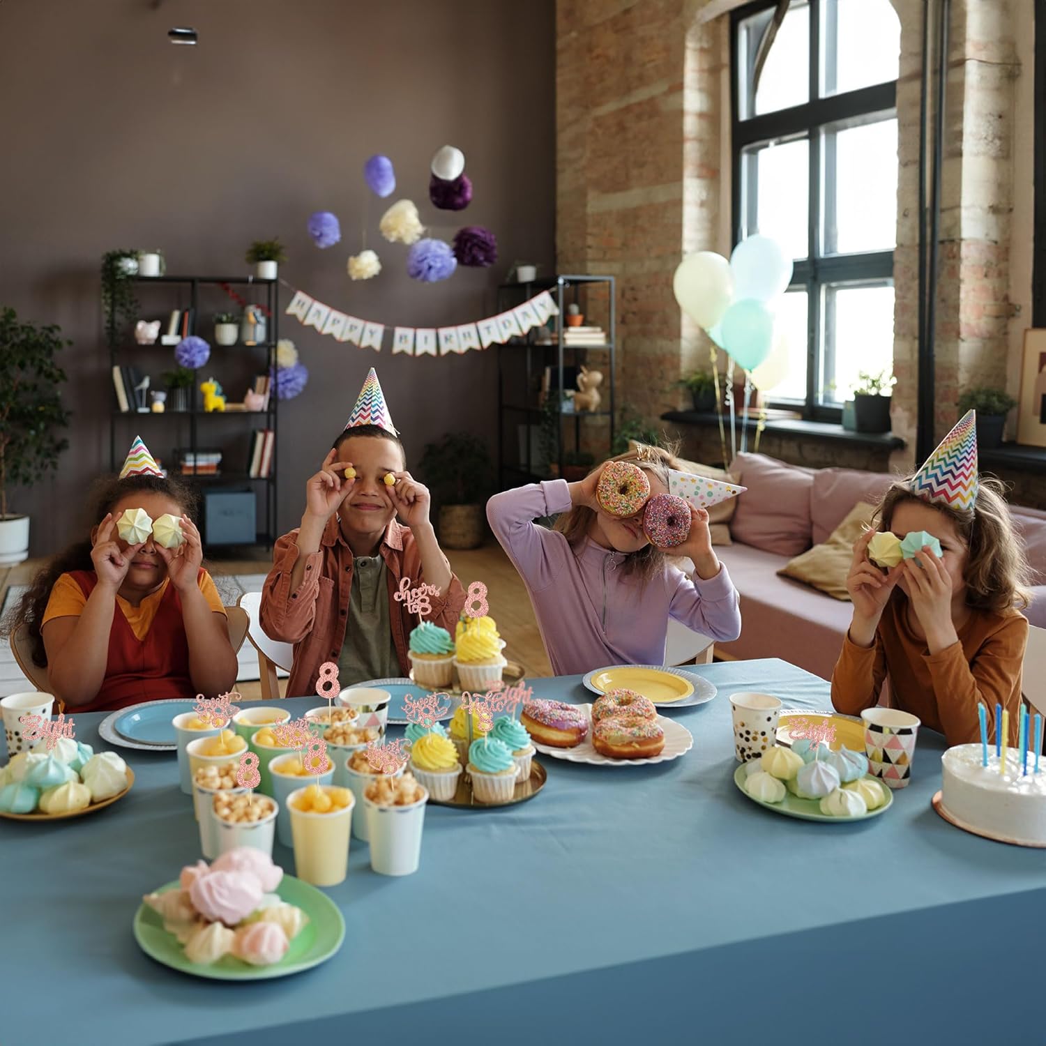 30Pcs 8th Birthday Cupcake Toppers Glitter Eight Hello 8 Cupcake Picks Cheers to 8 Years Old Cake Decorations for 8th Birthday Party Supplies Rose Gold