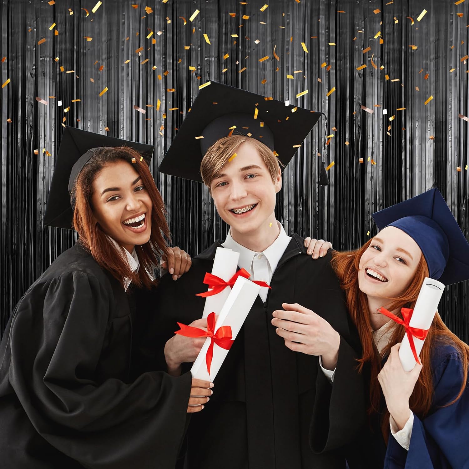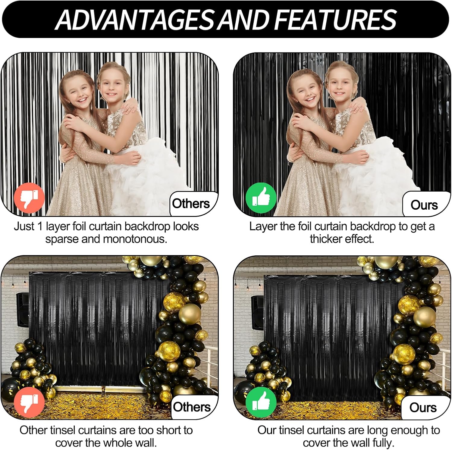 2 Pack Black Foil Fringe Curtains Streamers Party Decorations 3.3 x 8.2 ft, Black Tinsel Curtain Fringe Backdrop for Parties, Door Fringe Birthday Streamers, Photo Booth Backdrops, Party Decor