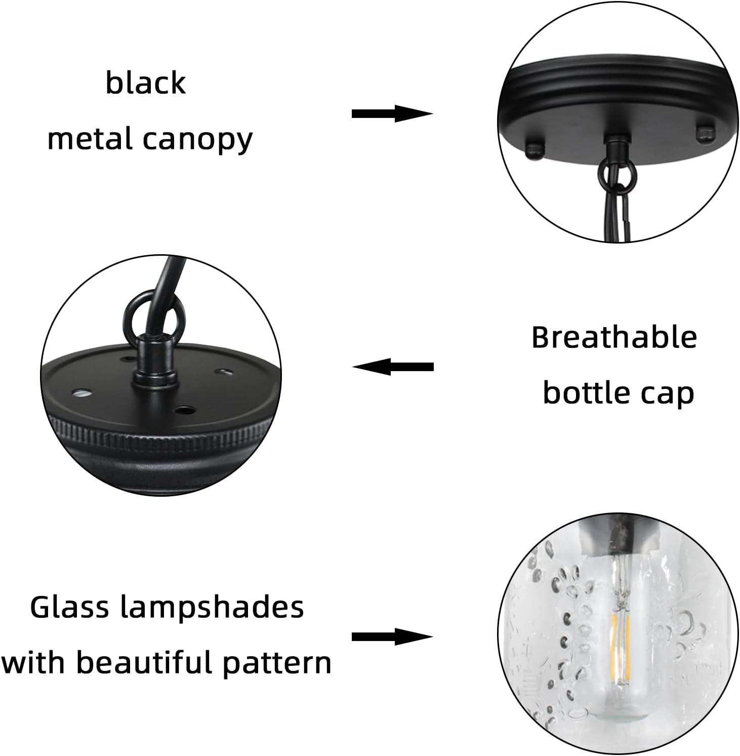 - 🔆Easy to assemble and install🔆 --This glass mason jar ceiling light for the kitchen island includes all the necessary parts for assembling and installation. With some experience and electrical knowledge, you can easily install it yourself in just a few minutes.
