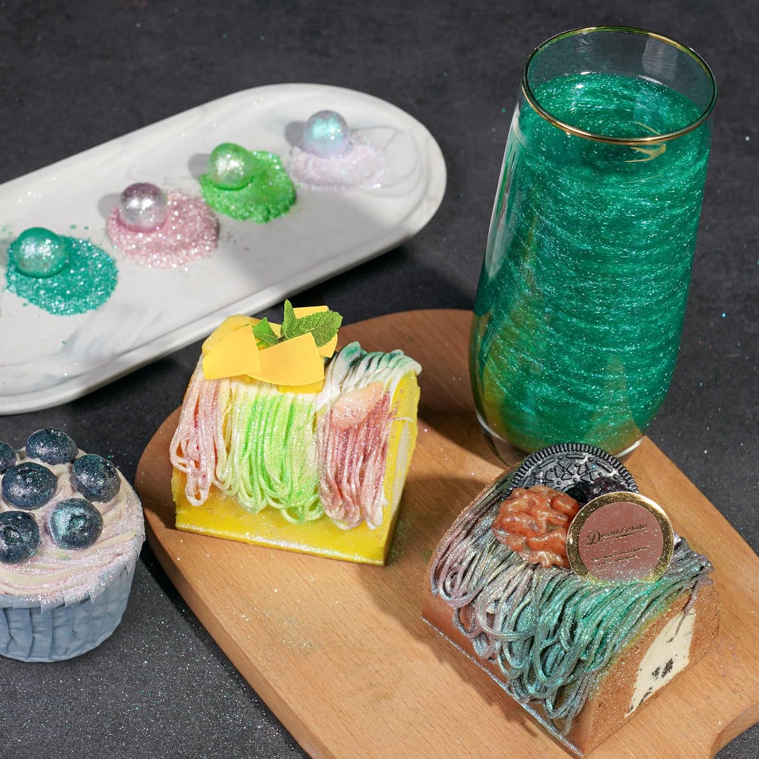 - 🌟【Easy to Use】Specially developed for food decoration and craft industries, this luster dust produces realistic looks by highly pigmented colors with a metallic finish. The pretty fine grain is more convenient for painting. To add glimmer and sparkle to your creations, simply sprinkle or dry brush the luster glitters on them. This product adheres very well to both wet and dry mediums. Attention: Seal and store glitter powder in a cool and dry place after use. Do not expose to excessive heat.
