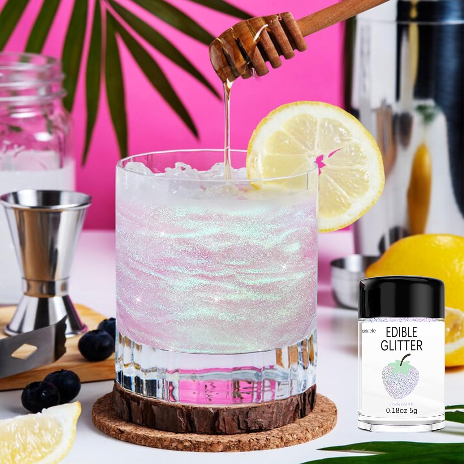 Iridescent Edible Glitter for Drinks - 5 Grams Prism Powder Cocktail Drink Glitter Food Grade Luster Shimmering Dust Vegan Metallic Food Coloring Sprinkle for Cake Decorating, Chocolates, Fondant Pops
