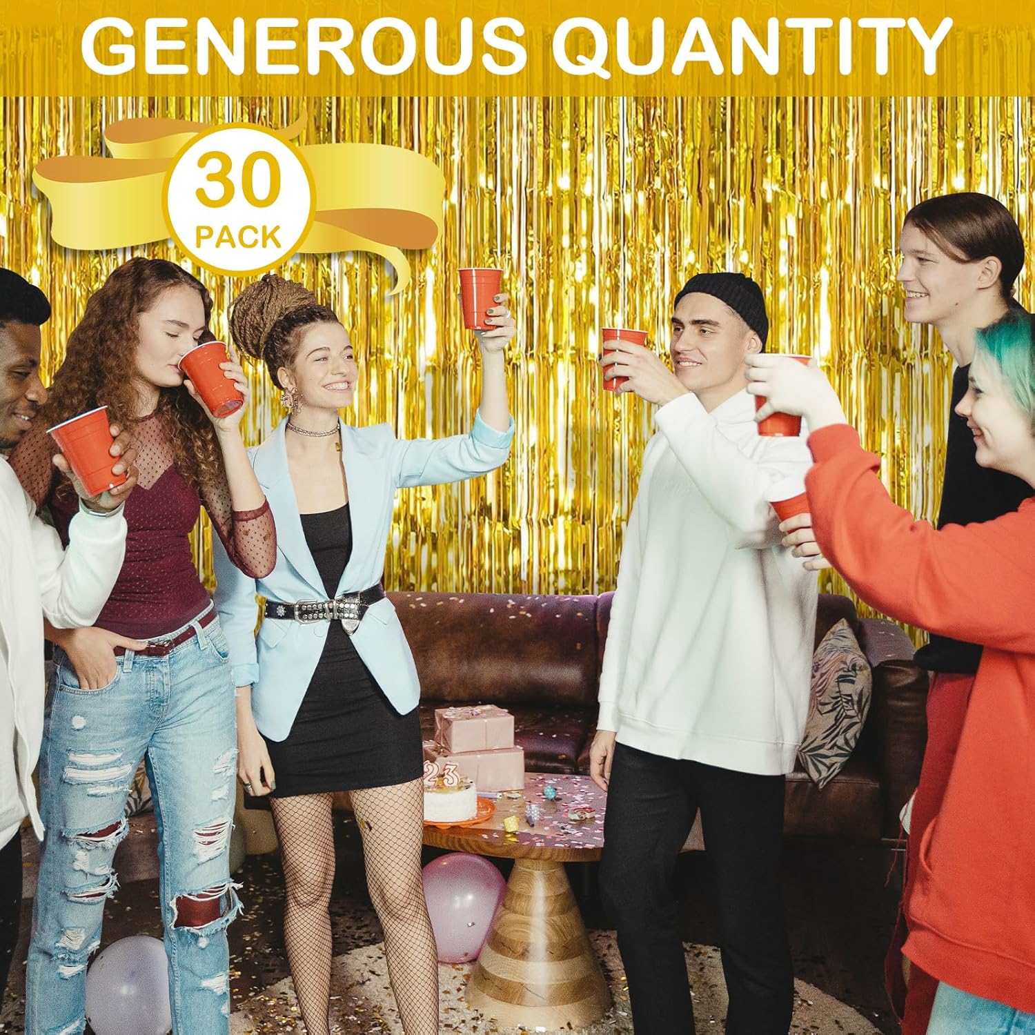 - 【Extra Large Quantity】You will receive 30 packs of gold foil fringe curtains. Each pack of foil curtains size is 3.28ft in width and 8.2ft in length, abundant quantity and enough length to meet almost all your party decoration needs.