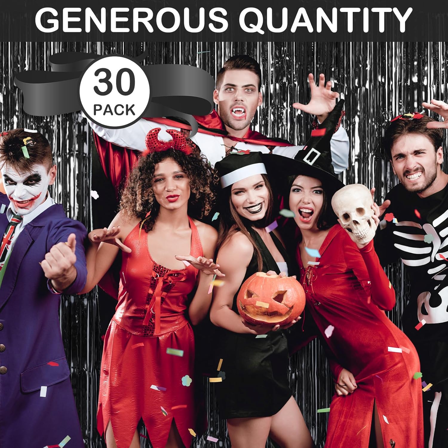 - 【Extra Large Quantity】You will receive 30 packs of black foil fringe curtains. Each pack of foil curtains size is 3.28ft in width and 8.2ft in length, abundant quantity and enough length to meet almost all your party decoration needs.
