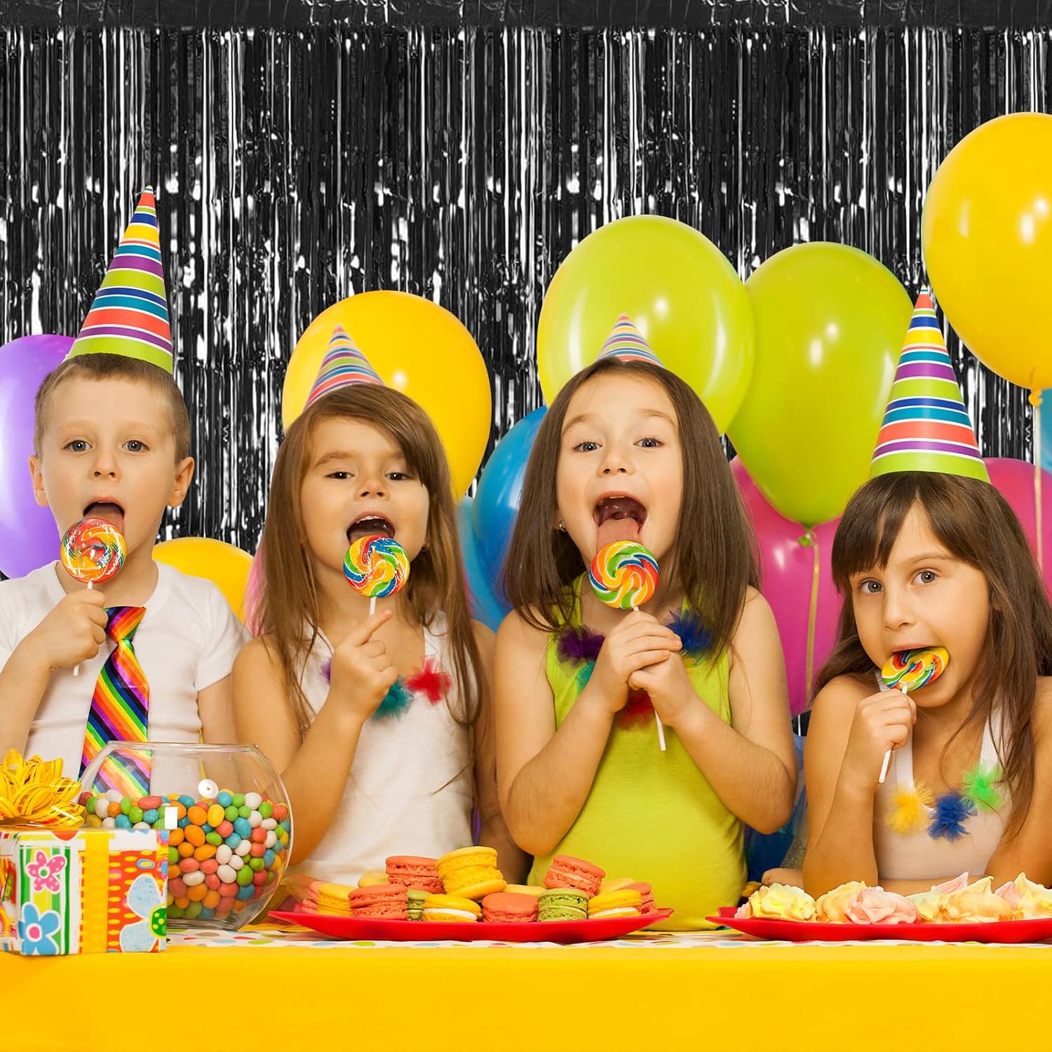 - 【Premium Material】The black foil curtain backdrops are made of sturdy and flexible tinsel with a shiny and reflective surface, which will maintain the glitter effect all the time. Great for creating a sparkling atmosphere as decorations for parties.