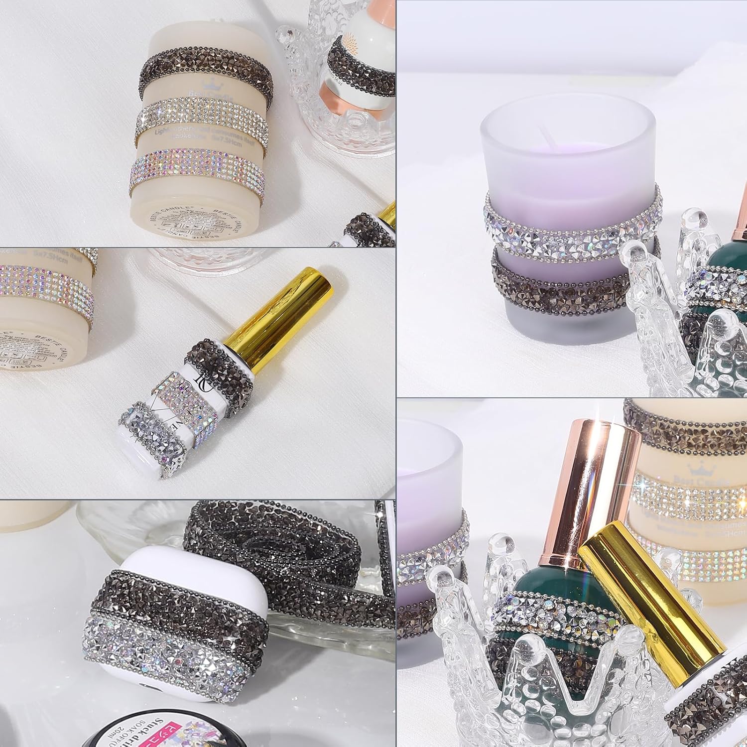 - Wide Applications: The bling rhinestone sticker strip is suitable for many DIY decorations, mirrors, candles, vases, photo frames, costumes, home decor, offices, gardens, cars, personalized phone cases, jewelry boxes, and other places.