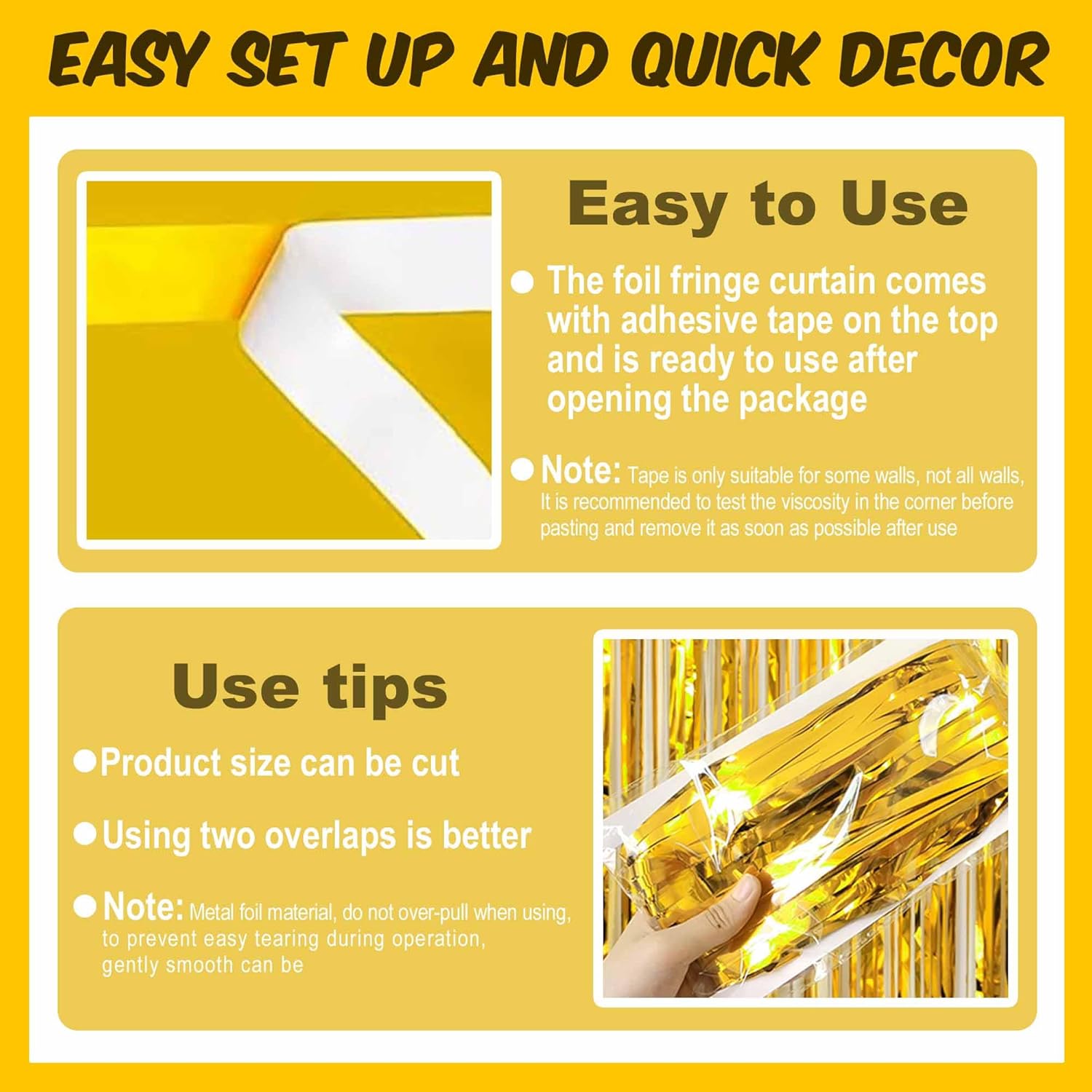 - Easy to Use: The tinsel foil fringe streamers curtain backdrop comes with double sided tape on the top, gently peel plastic strip off and it would be very easy to paste on smooth surfaces such as wall, window, table, door or anywhere you like