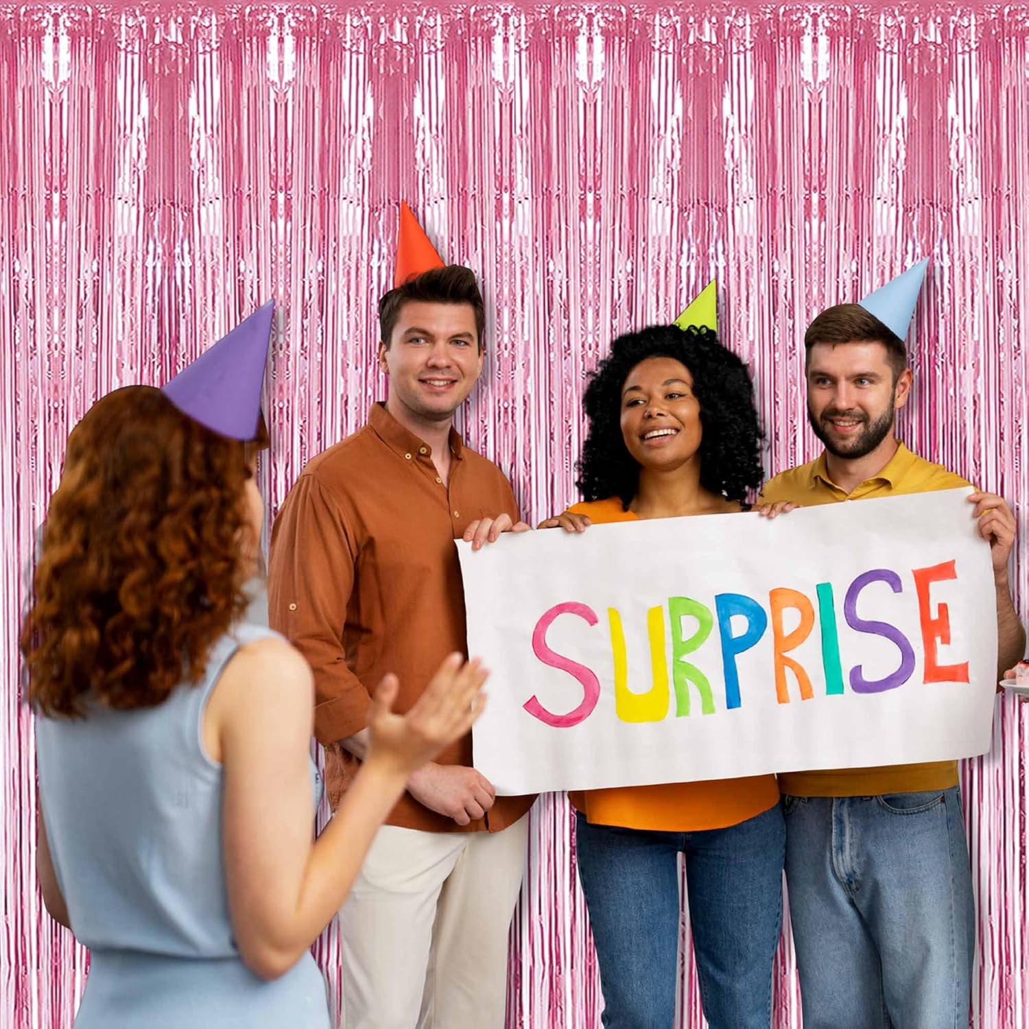 6 Pack Pink Foil Fringe Curtains Backdrop, 3.28 x 8.2 Ft Metallic Streamers Tinsel Curtains Background for Photo Booth, Birthday, Weddings, Carnivals, Graduation, Themed Party Decorations