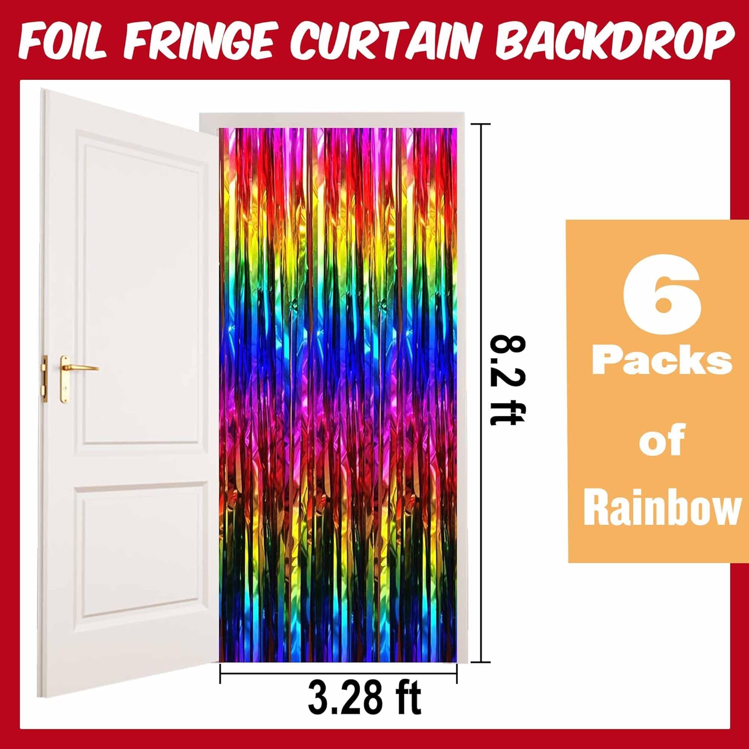 6 Pack Rainbow Foil Fringe Curtains Backdrop, 3.28 x 8.2 Ft Metallic Streamers Tinsel Curtains Background for Photo Booth, Birthday, Weddings, Carnivals, Graduation, Themed Party Decorations