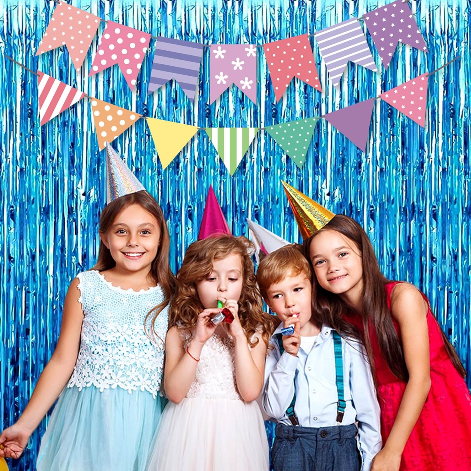 6 Pack Lake Blue Foil Fringe Curtains Backdrop, 3.28 x 8.2 Ft Metallic Streamers Tinsel Curtains Background for Photo Booth, Birthday, Weddings, Carnivals, Graduation, Themed Party Decorations