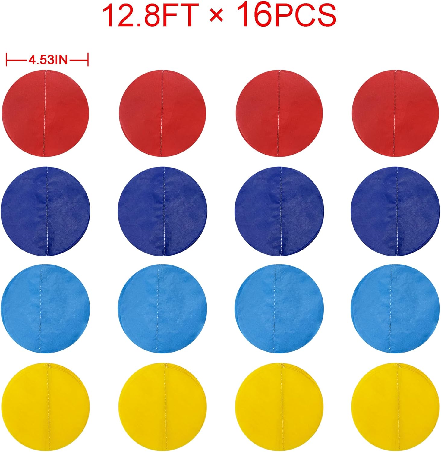 - 🔴PACKAGE CONTAINS- 16 packs of carnival circle dot party garland banner,Each string is 12.8 feet/3.9 meters with 30 pcs polka dots, Total is 62.4 meters/205 feet.