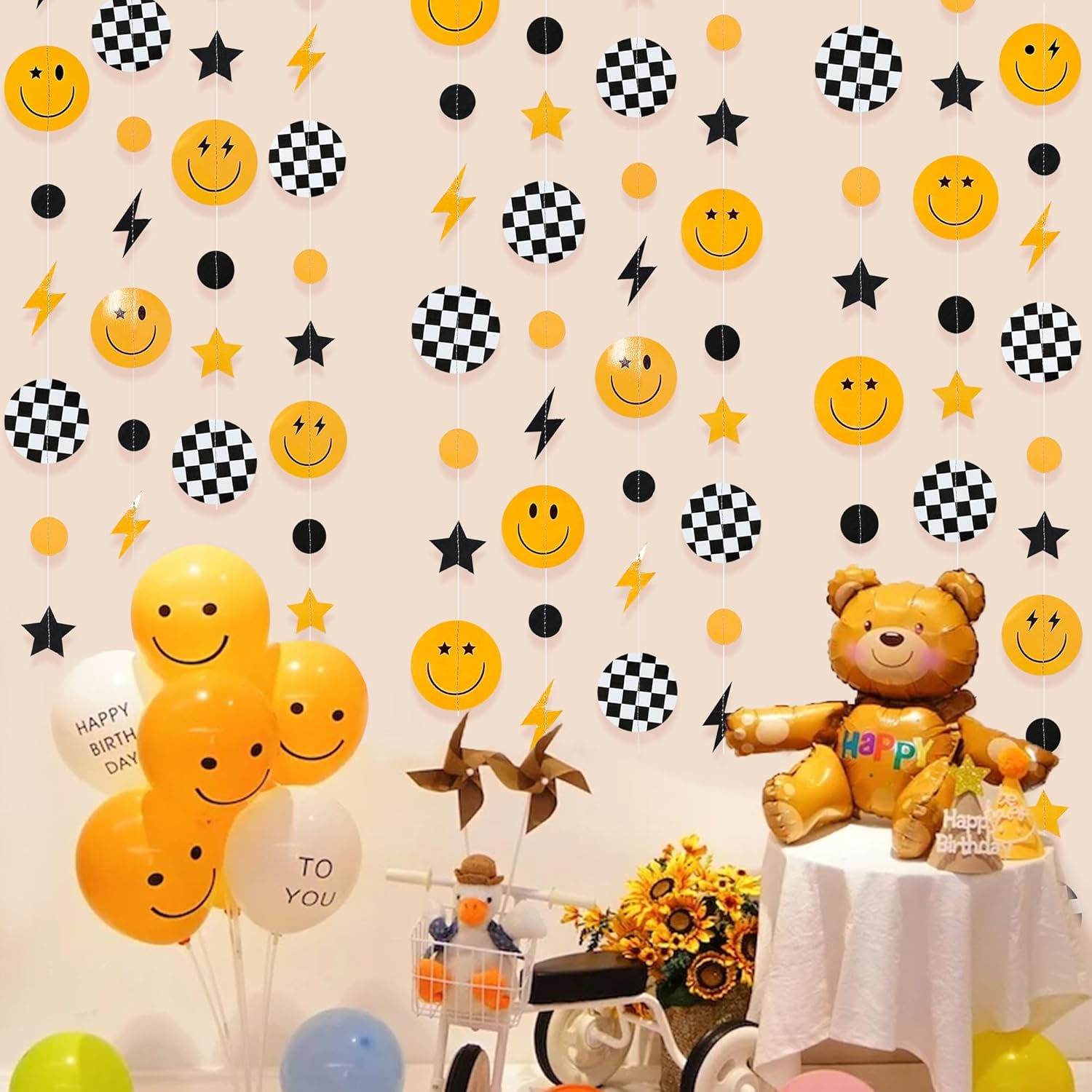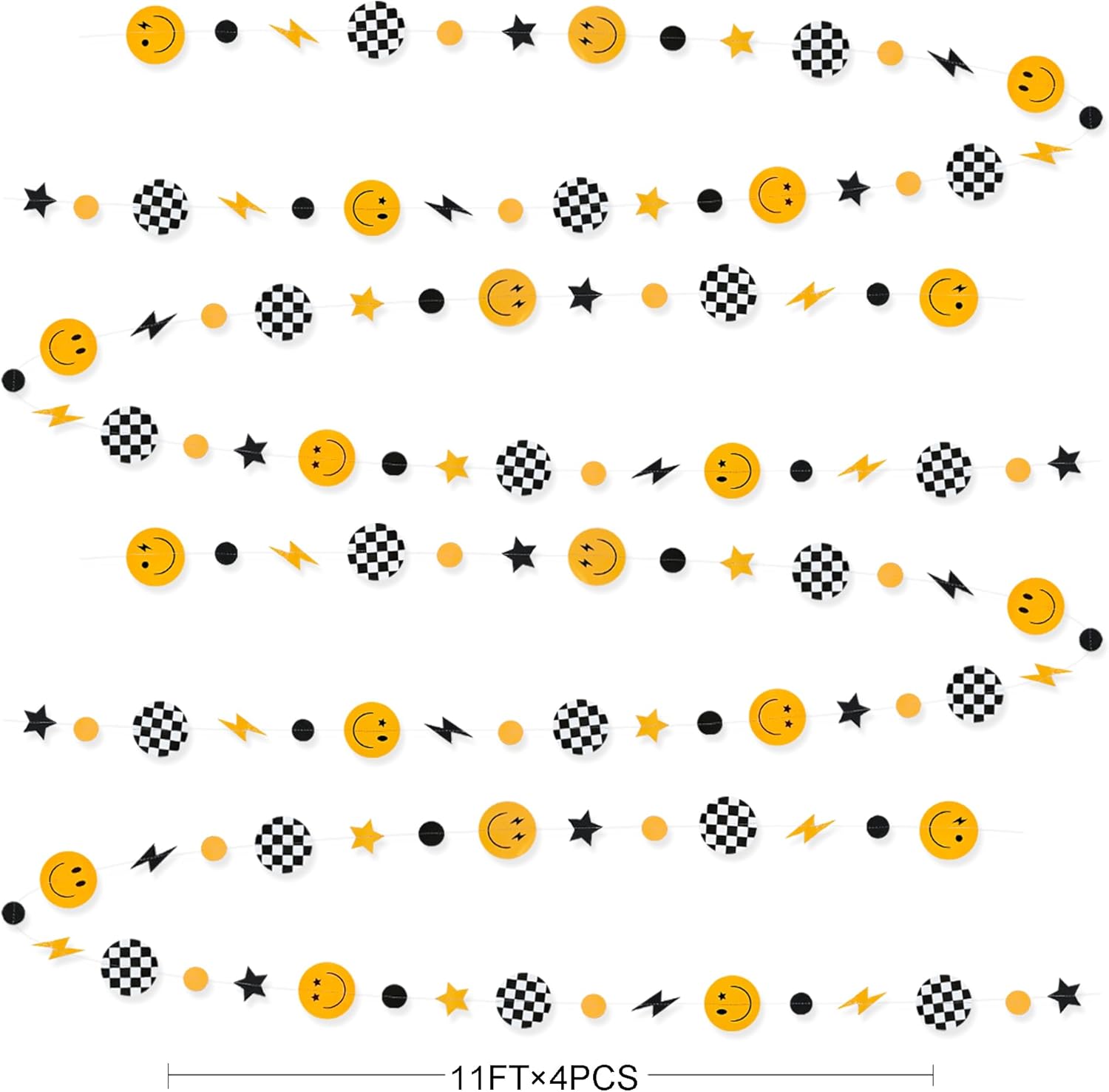 - ⚡PACKAGE CONTAINS- 4 set of happy dude lightning star circle dot party garland banner,each string is 11 feet, Total is 44 feet.