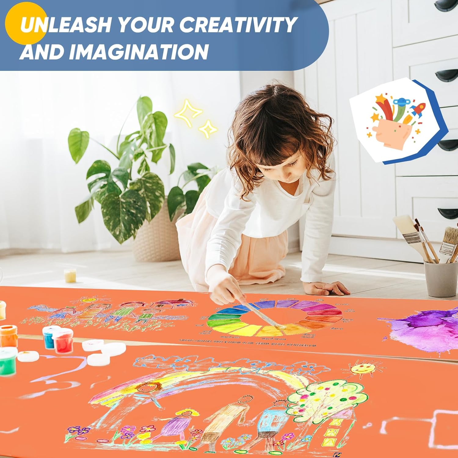 - 【Works with Different Materials】 Our kraft paper is unwaxed and uncoated, which means long-lasting art that won't fade away with time. You can use this craft paper roll with acrylic paints, oil paints, chalk, crayons, markers, gel pens, felt tip pens, fine point pens, watercolors, colored pencils, finger paints and tempera, and there is no smearing or bleeding to protect your table from the different art mediums.