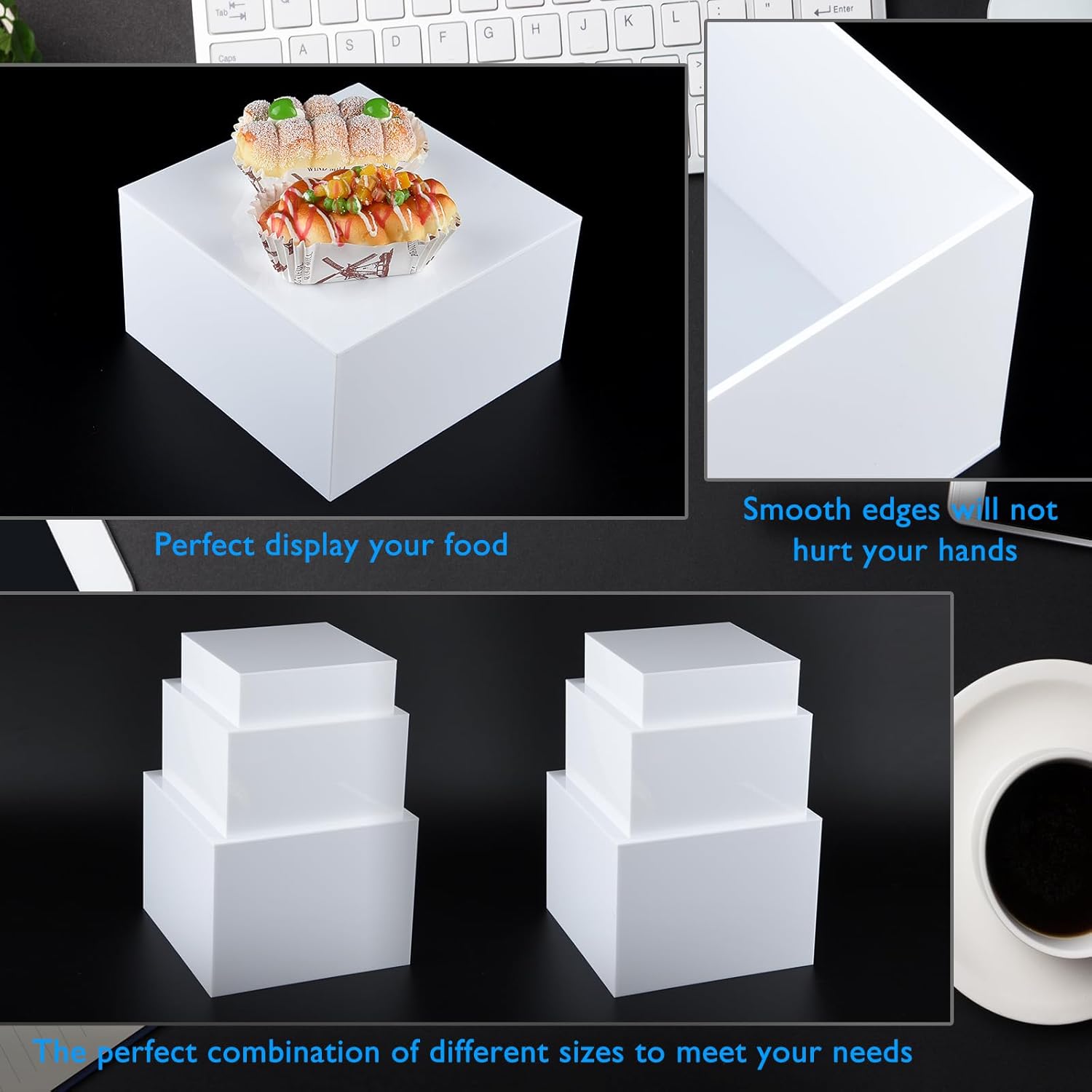 6Pcs White Buffet Risers, Acrylic Display Stand for Buffet Table Platter Parties Weddings Catering Dessert Collectibles Figures Show (6''x7''x8'')