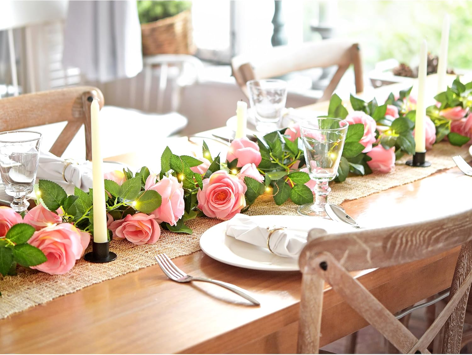 - Realistic faux roses with a heavenly glow: The silk-like pink roses catch the soft glow of the lights, creating a heavenly atmosphere that turns any room into your own personal sanctuary. Whether used as wedding backdrops or table runners, these vines with lights add a touch of nature and beauty to any setting.