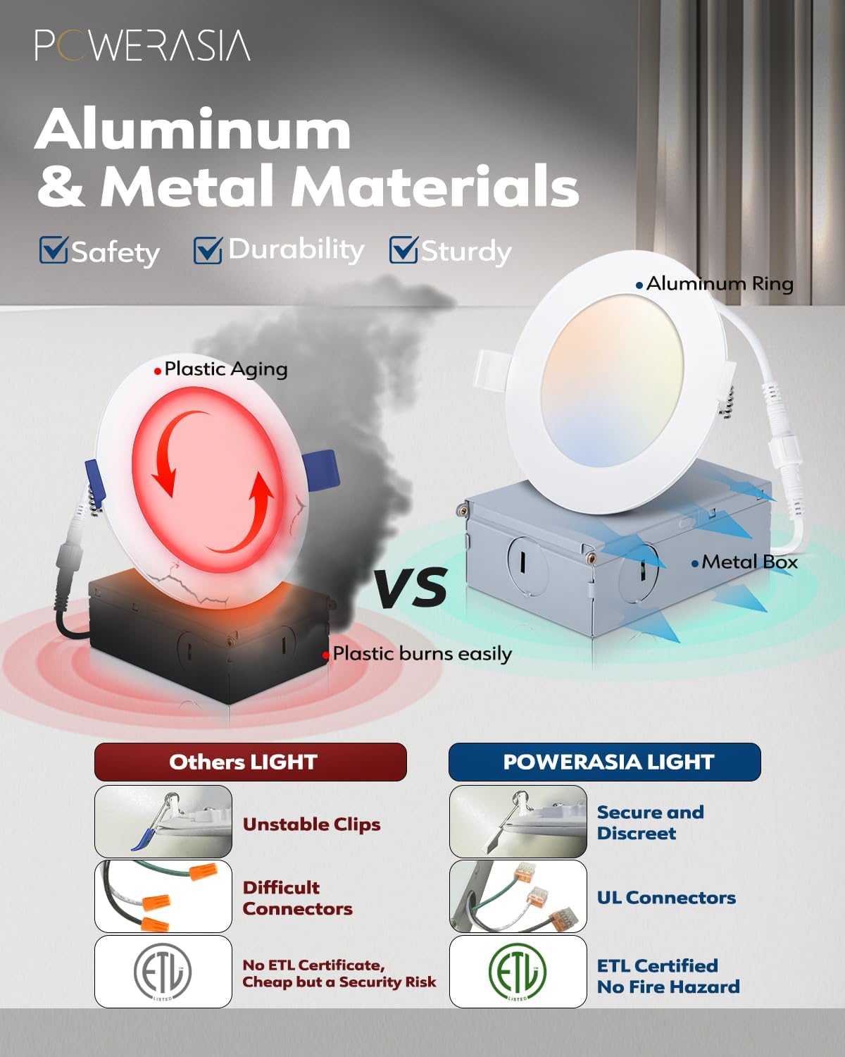 - š”ćHigh Brightnessć POWERASIA 90+CRI technology brings true color rendering to your house. The 4-inch slim lights use the new generation of LED chips with higher lumens and lower power. 850LM 9 Watts, which equals to 110W incandescent lamp, saving you up to 88% in energy costs.