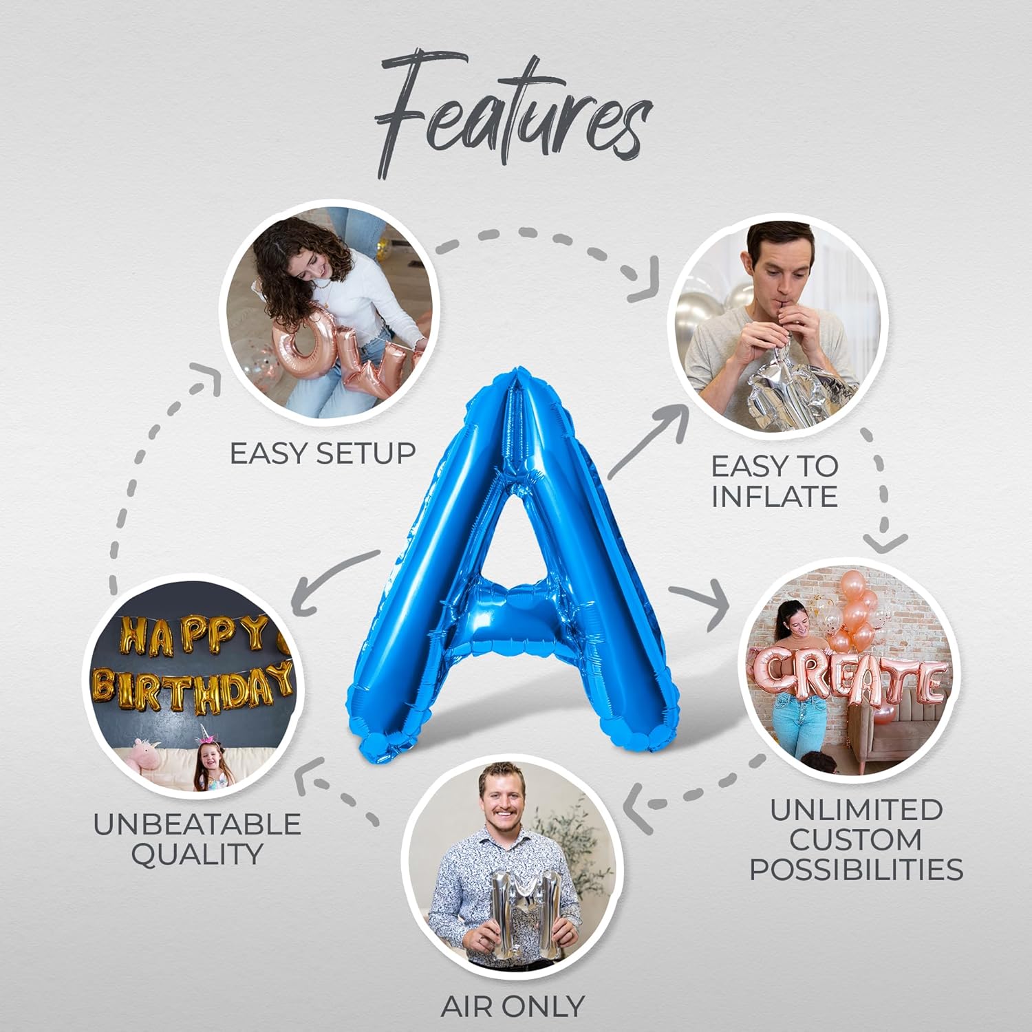 - EASY TO INFLATE & DISPLAY: Our letter balloons are designed to be filled with air and hung from a ribbon. All sets come with straws for inflating the balloon, ribbon and instructions. Please remember that these balloons will not float.