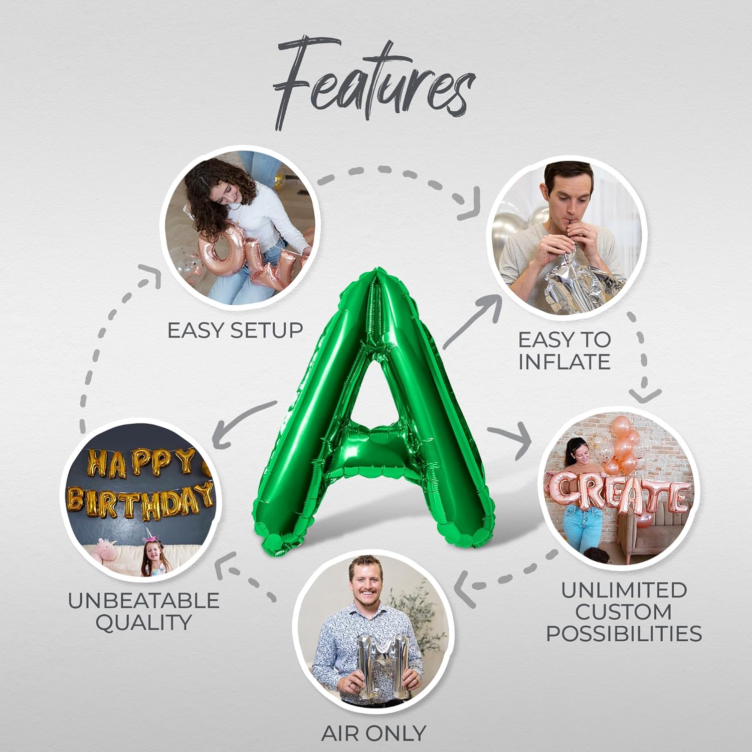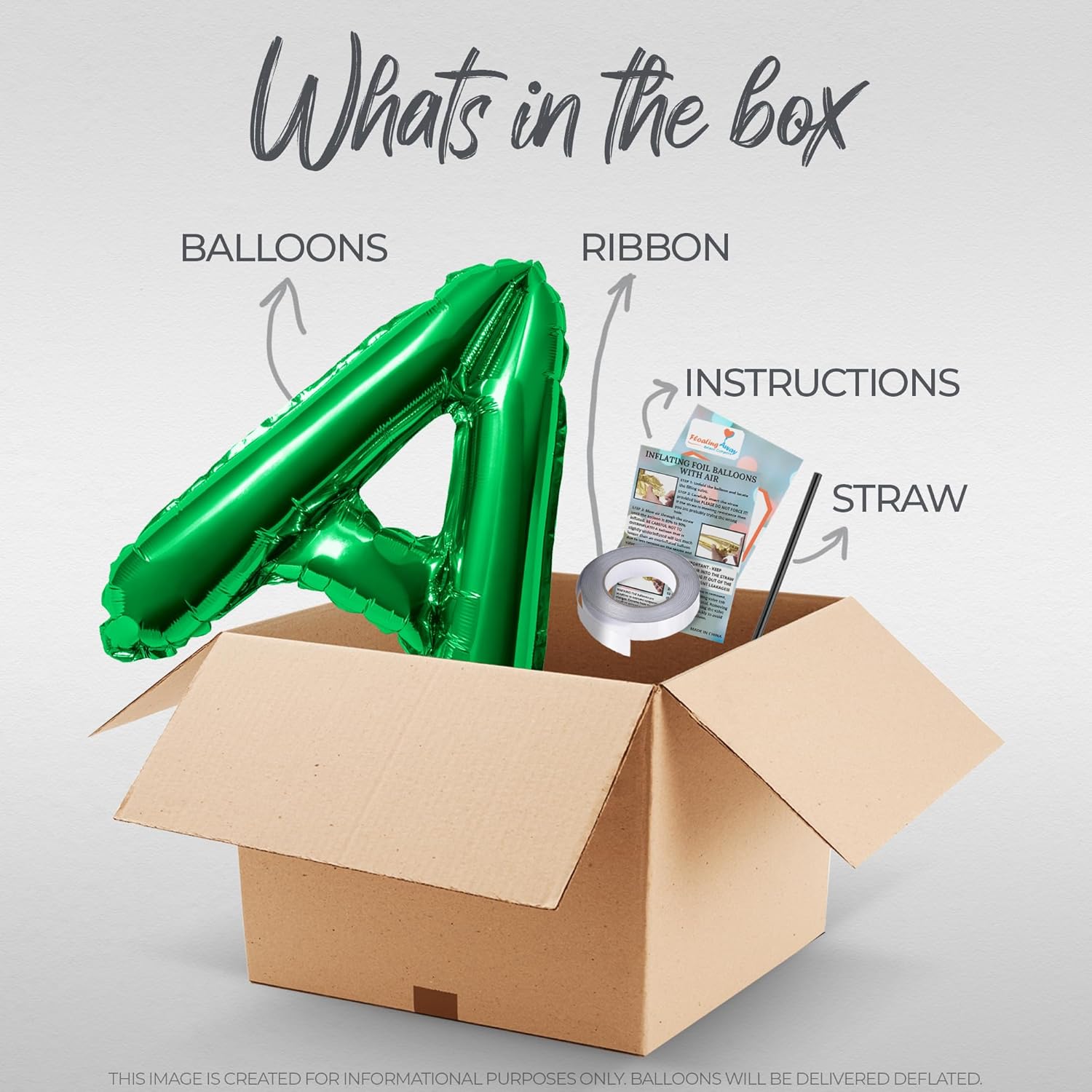 - Included Components : Letter Balloons, Straw, Ribbon and Instructions