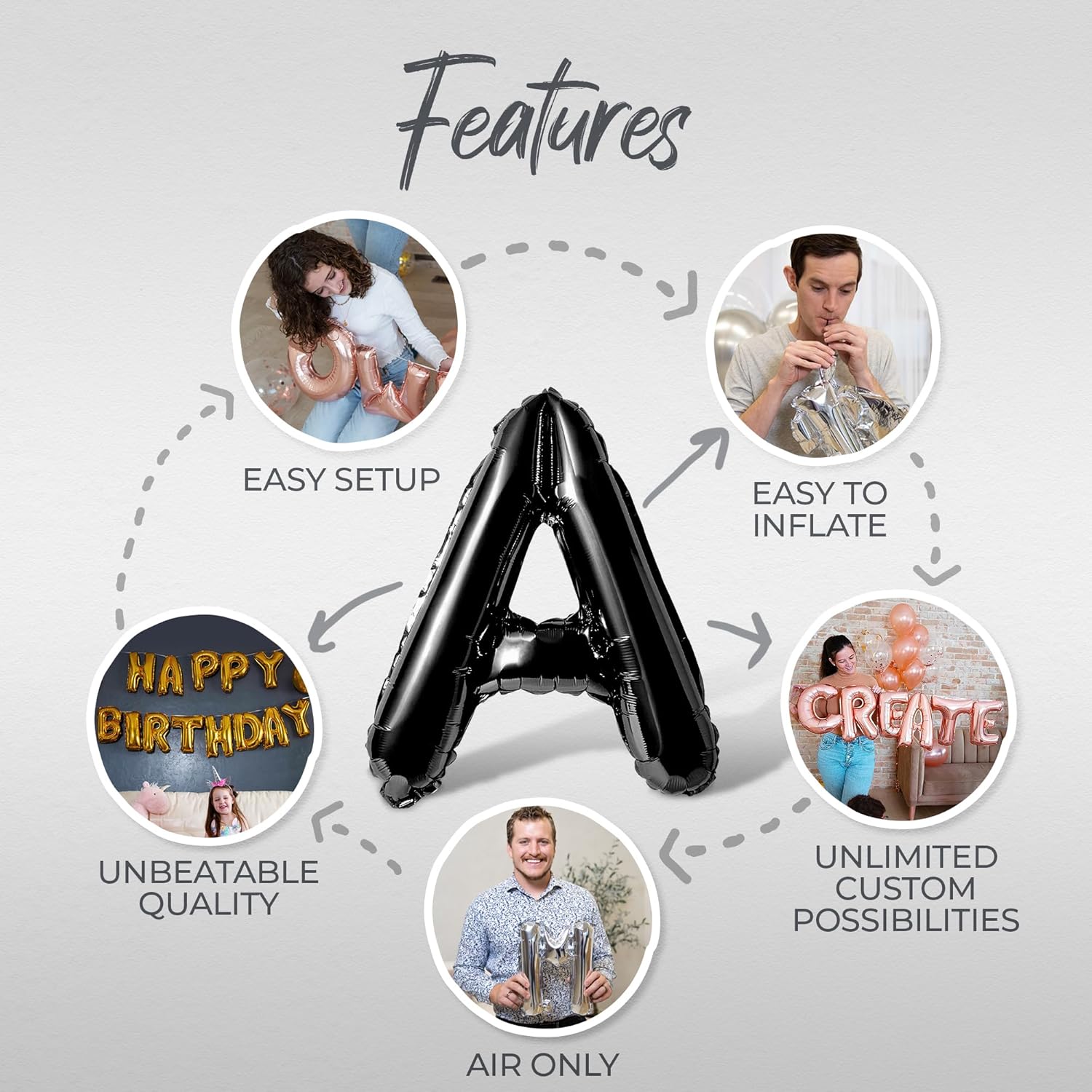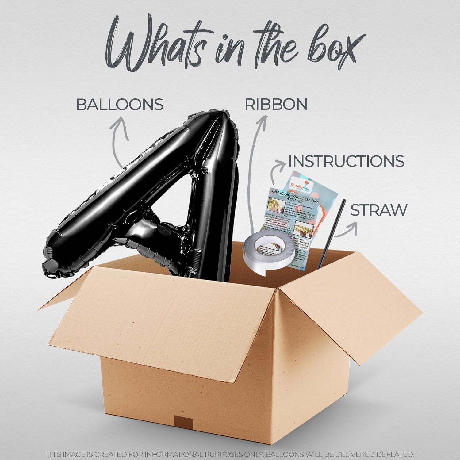 - Included Components : Letter Balloons, Straw, Ribbon and Instructions