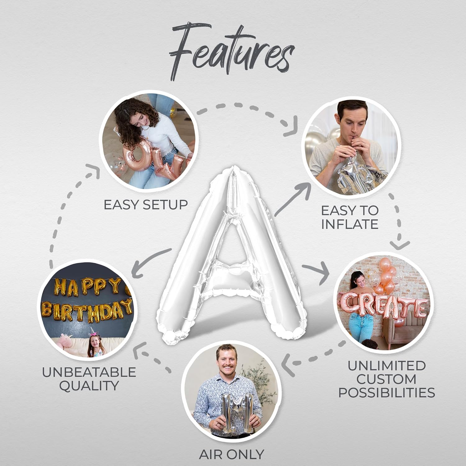 - EASY TO INFLATE & DISPLAY: Our letter balloons are designed to be filled with air and hung from a ribbon. All sets come with straws for inflating the balloon, ribbon and instructions. Please remember that these balloons will not float.