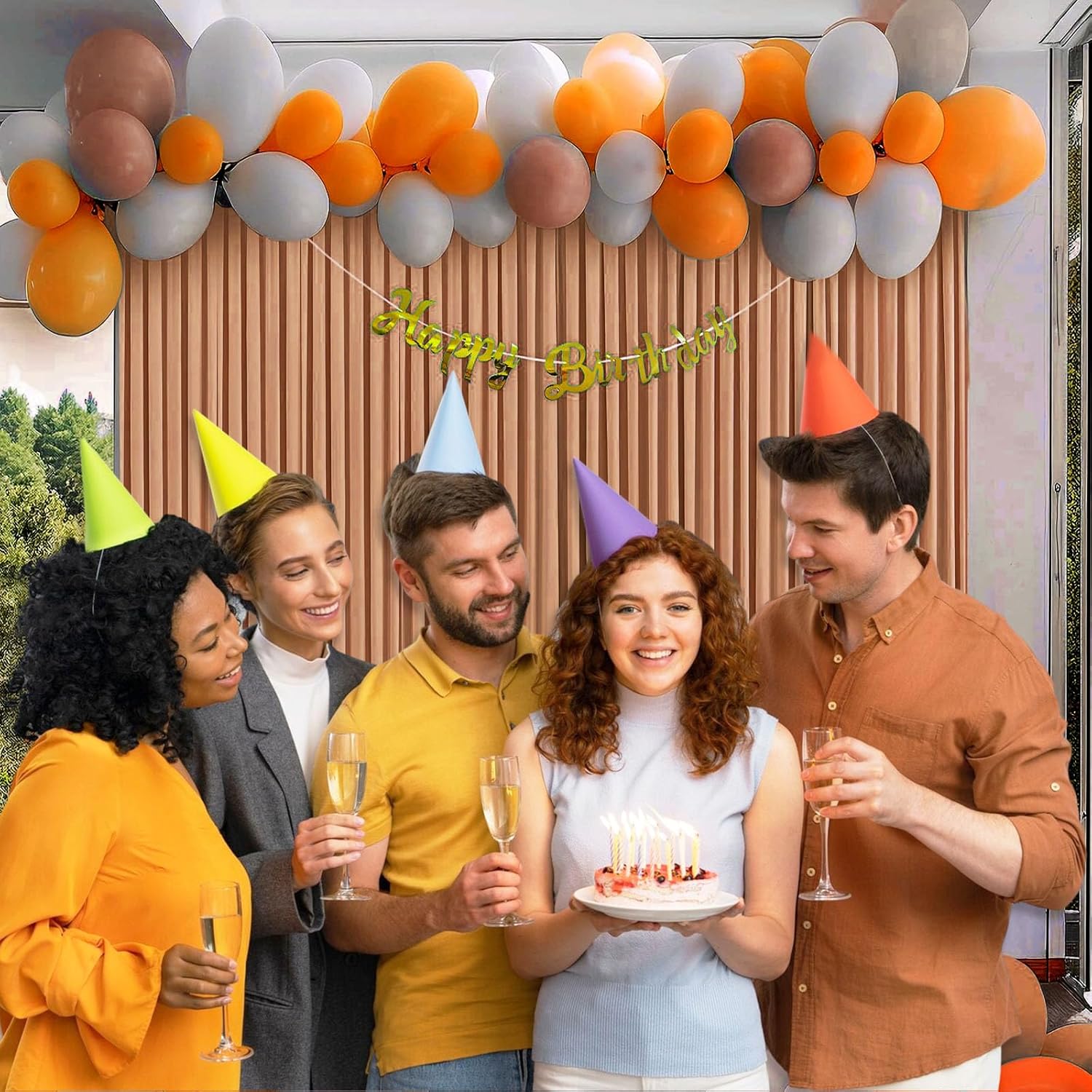 10 x 10 Feet Khaki Backdrop Curtain for Partie, Background Curtains for Photoshoot, Birthday, Wedding, Halloween, Thanksgiving, Christmas Day, New Year Party Decorations 5Ft x 10Ft, 2 Panels