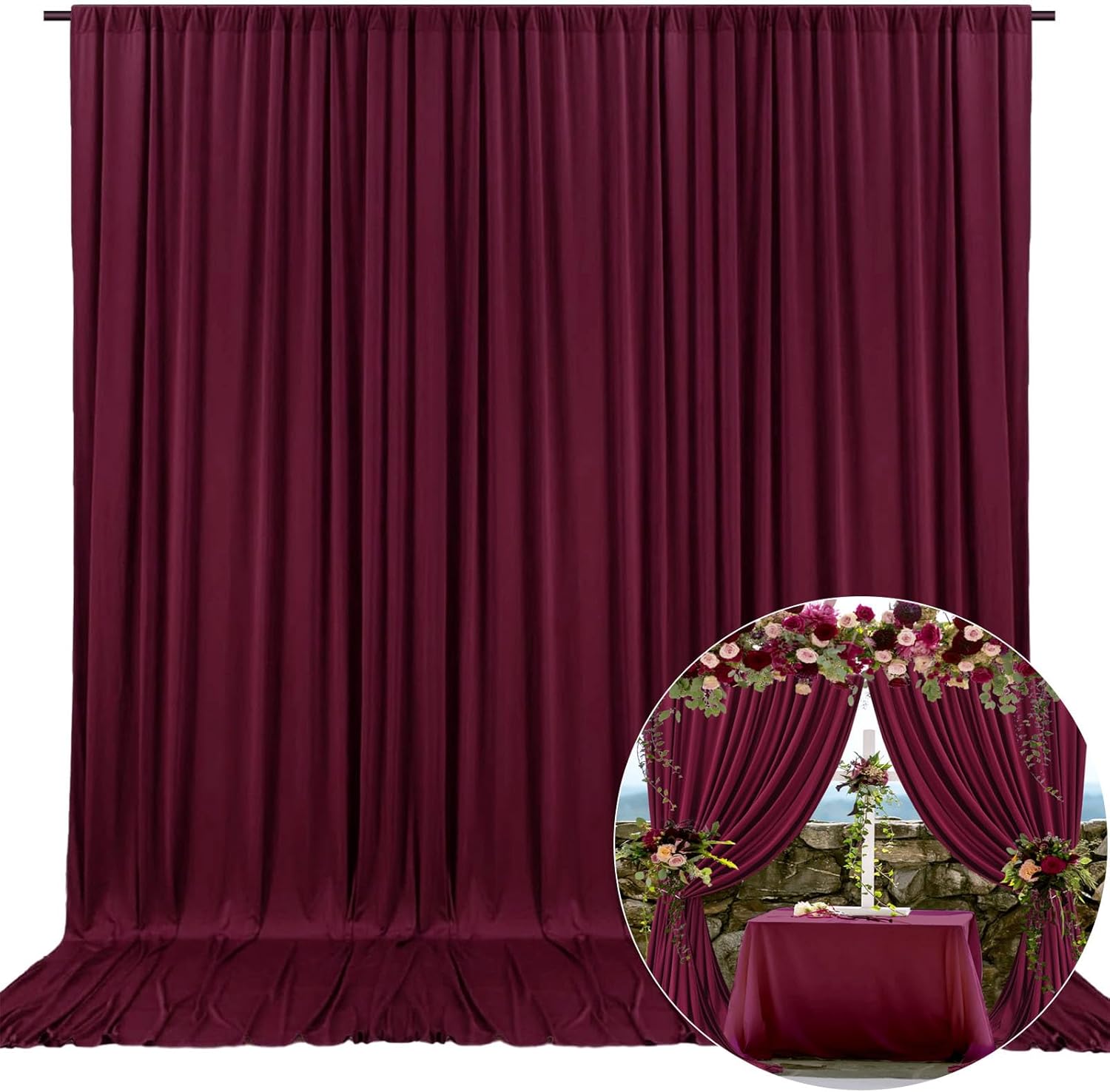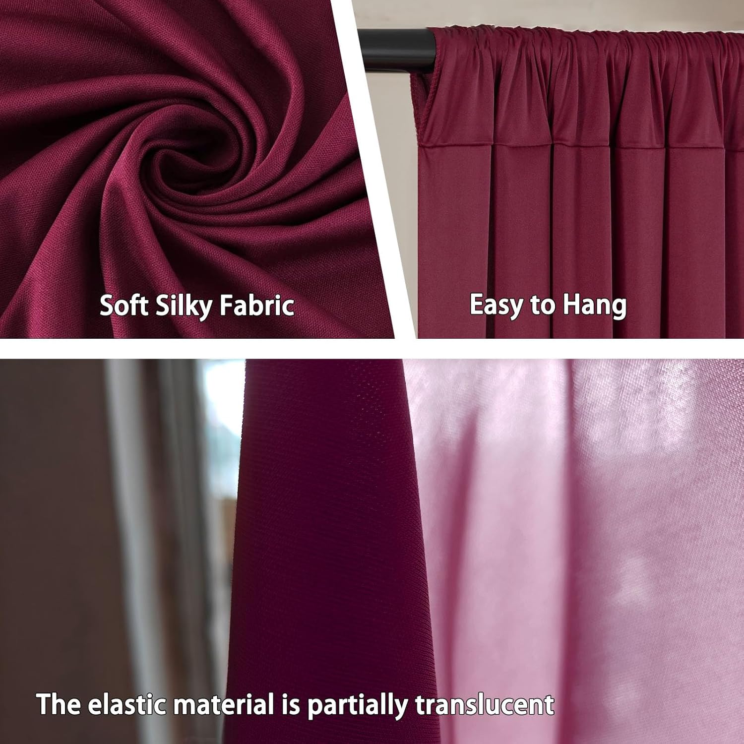 - 【Backdrop Curtains for Parties Amazing Material】Backdrop curtain for parties is made from satin and wrinkle resistant premium silky fabric. A strong bit of texture that looks and feels extraordinary.