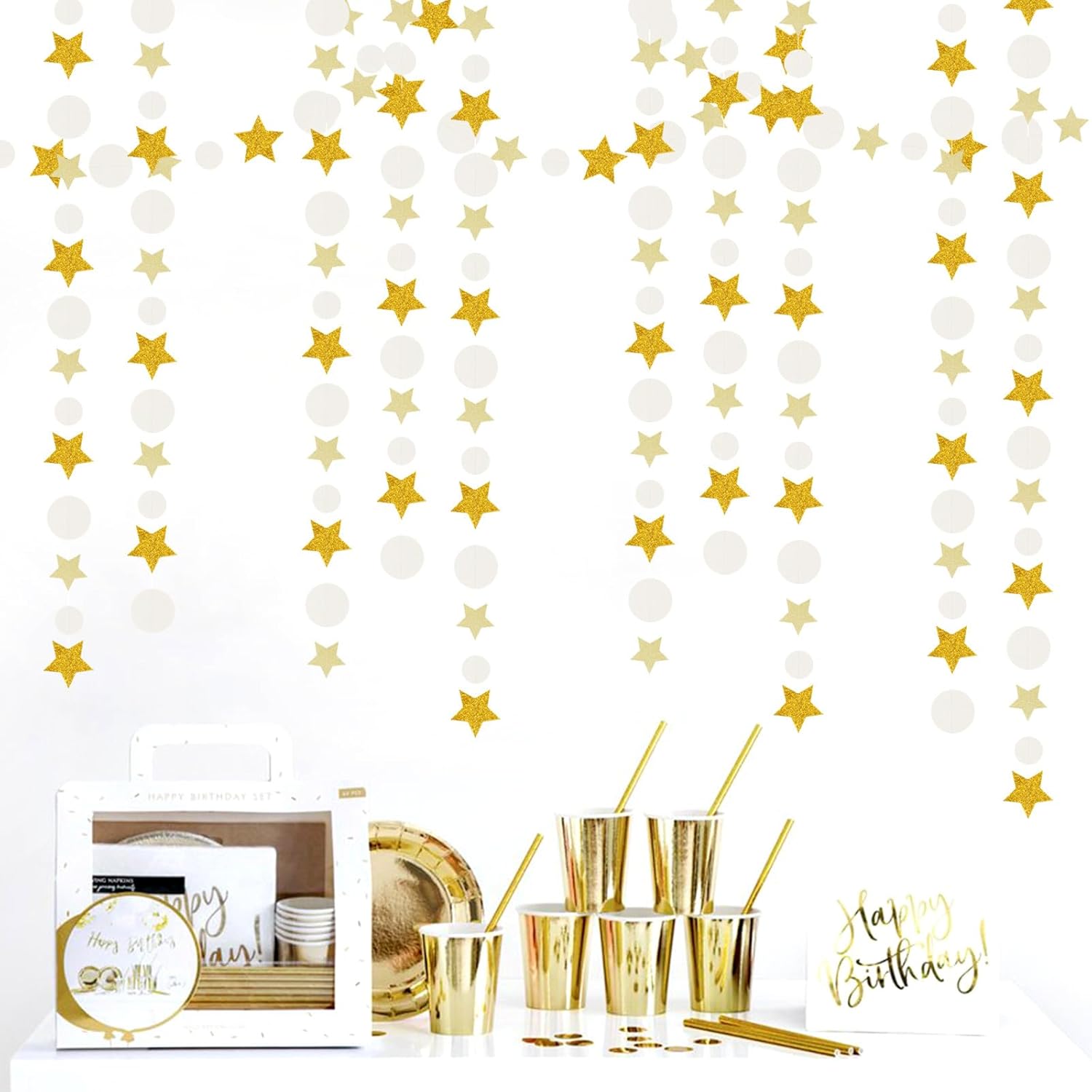 - 【Material】The material is eco-friendly gold,light gold,ivory paper.You can cut to any length you want if you need shorter length.The dots and stars are cut very neatly.