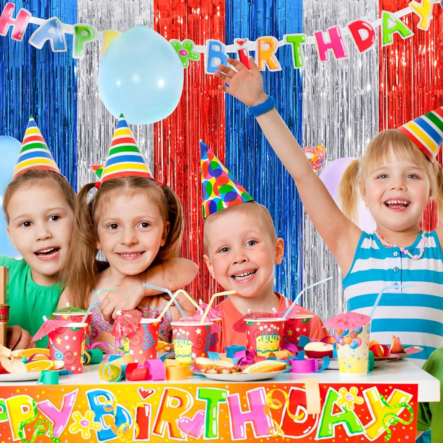 2Pack 3.3 x 8.3Ft Blue Red Silver Foil Fringe Streamers Curtain Metallic Foil Tinsel Fringe Door Streamers for Birthday Wedding Xmas Party Photo Iridescent Blue Streamers Party Decors Streamers