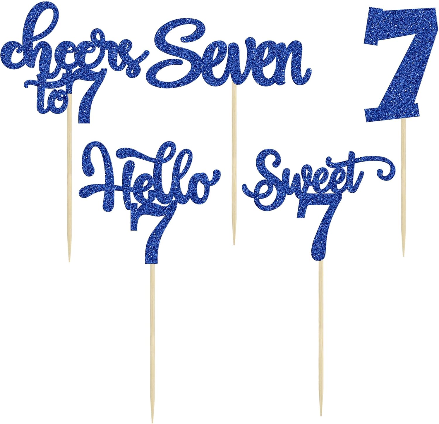 30Pcs 7th Birthday Cupcake Toppers Glitter Seven Happy 7 Cupcake Picks Cheers to 7 Years Old Cake Decorations for 7th Birthday Party Supplies Deep Blue